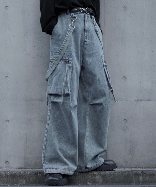 キーワード:カーゴパンツ メンズ ストレート ハイウエスト フルレングス ワイドパンツ 無地