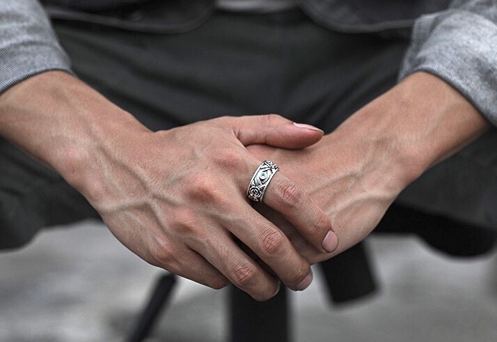 眼には小さいサファイア(人造)を使用していて、これは叡智の回復を象徴しています。フリーサイズ。シルバー925フィルド。