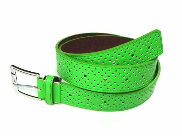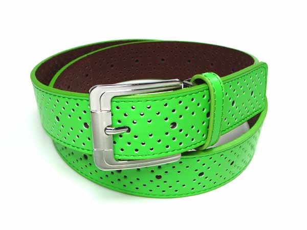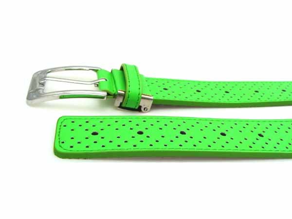 表面がライムグリーンカラーのパンチング加工されたベルトです。