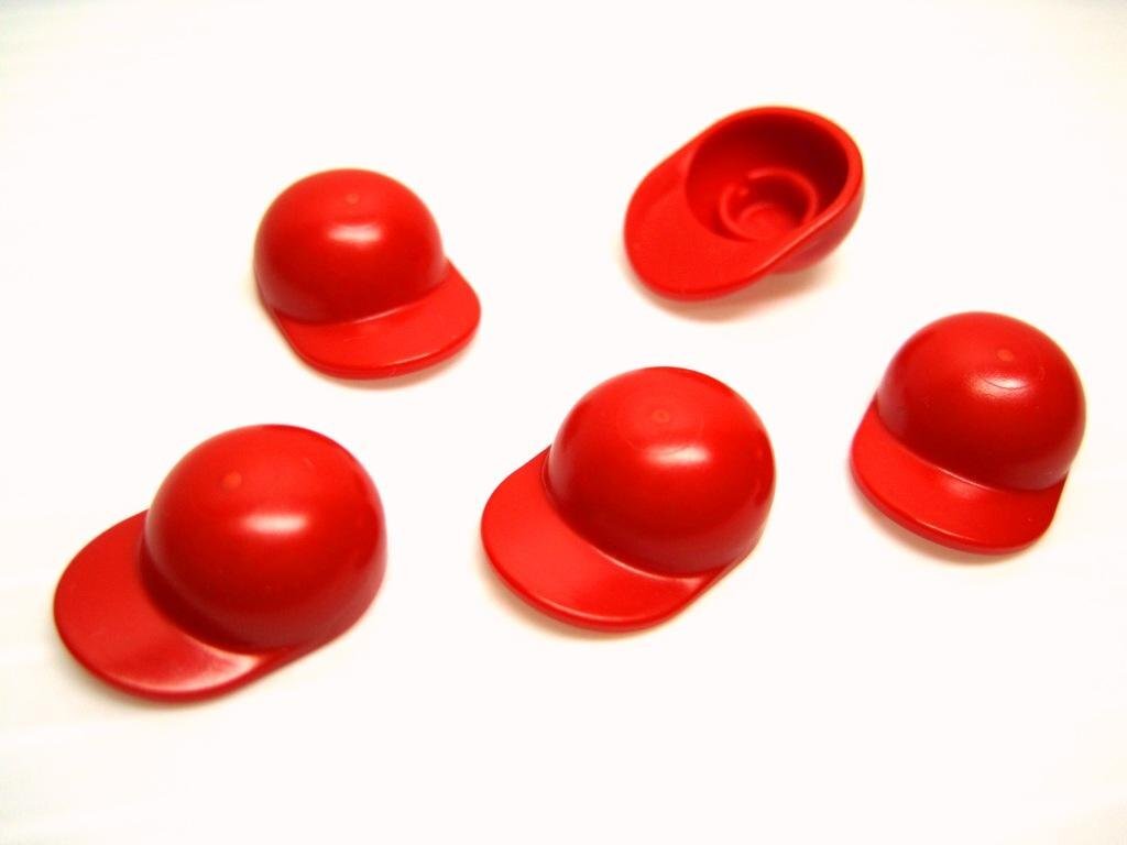 本品は赤色のミニフィグ用の帽子5点(curve)セットです。