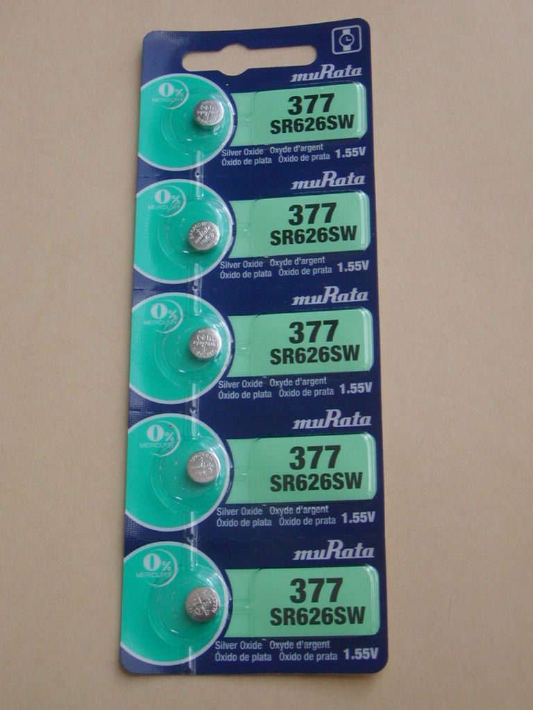 muRataの時計用ボタン電池:SR626SW(377) 1シート(5個)です。