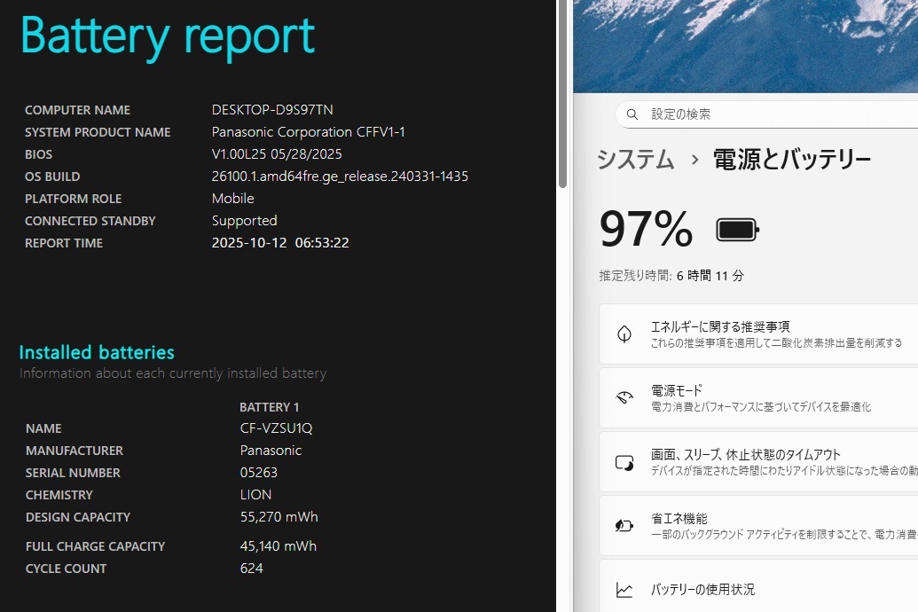 バッテリー 満充電後の残量を画像で記載(実際の稼働を保証するものではありません)