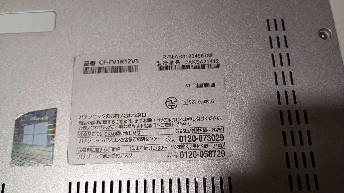 管51007-3 パナソニック CF-FV1R12VS タッチパネル動作OK CPU I5-1145G7 SSD 256GB メモリー 16GB
