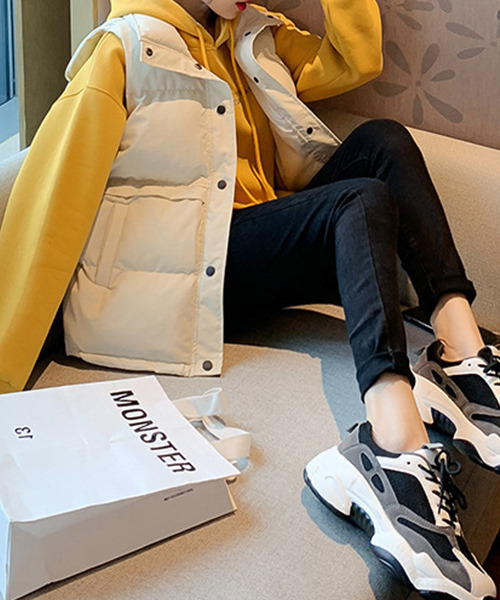 参考商品名:オーバーサイズ ユニセックス ハイネック中綿ダウンベスト culw261