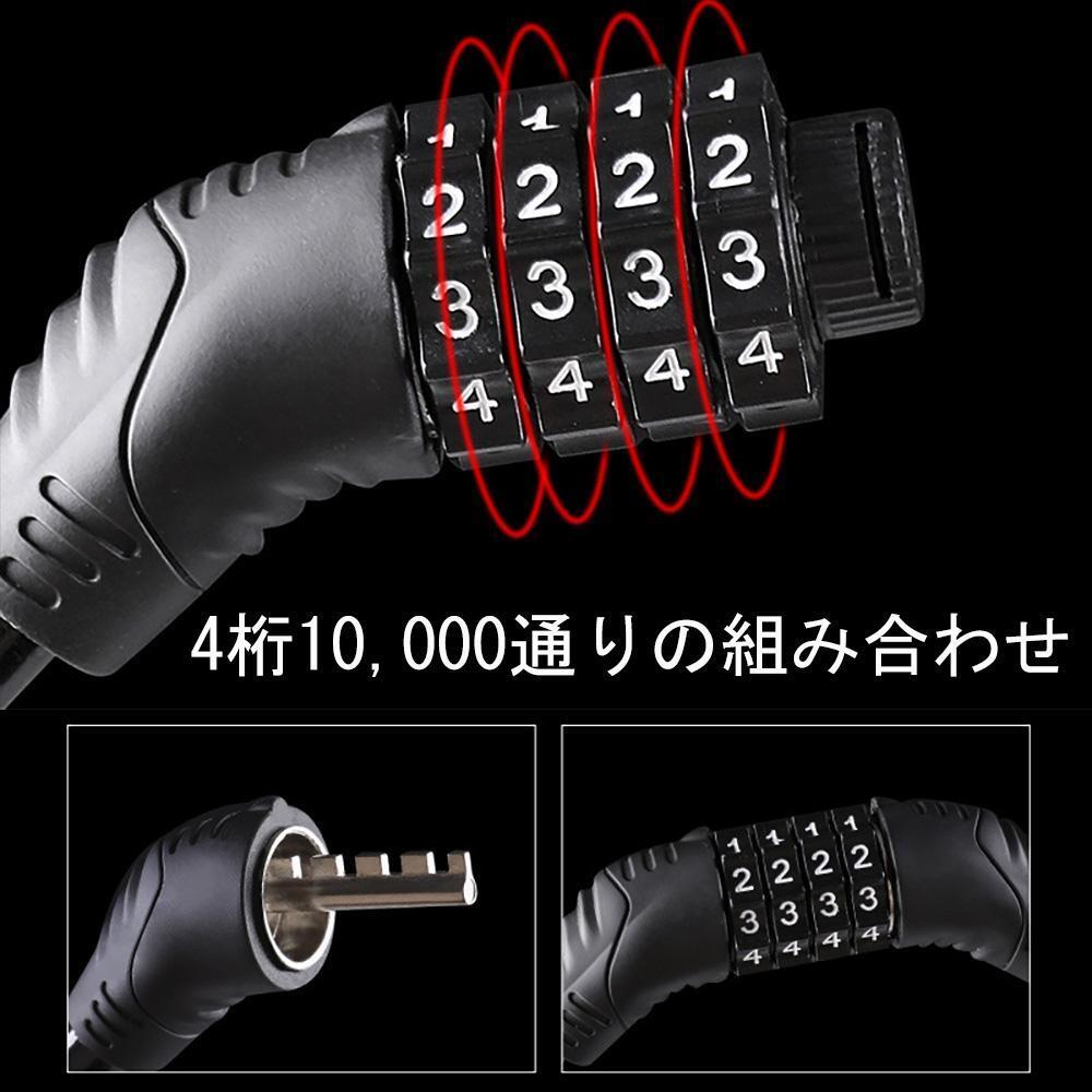 『ワイヤーロック ダイヤル式 4桁 小型 鍵 セキュリティ 盗難防止 自転車 バイク ブラック 黒』です。