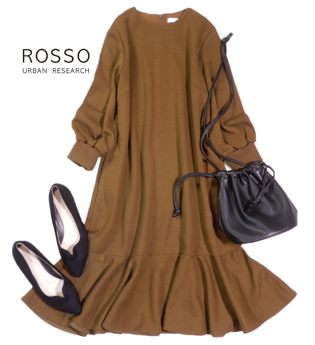 ロッソ アーバンリサーチ FbyRosso 大人可愛い☆ ストレッチ ふっくら袖 裾フレアワンピース 38