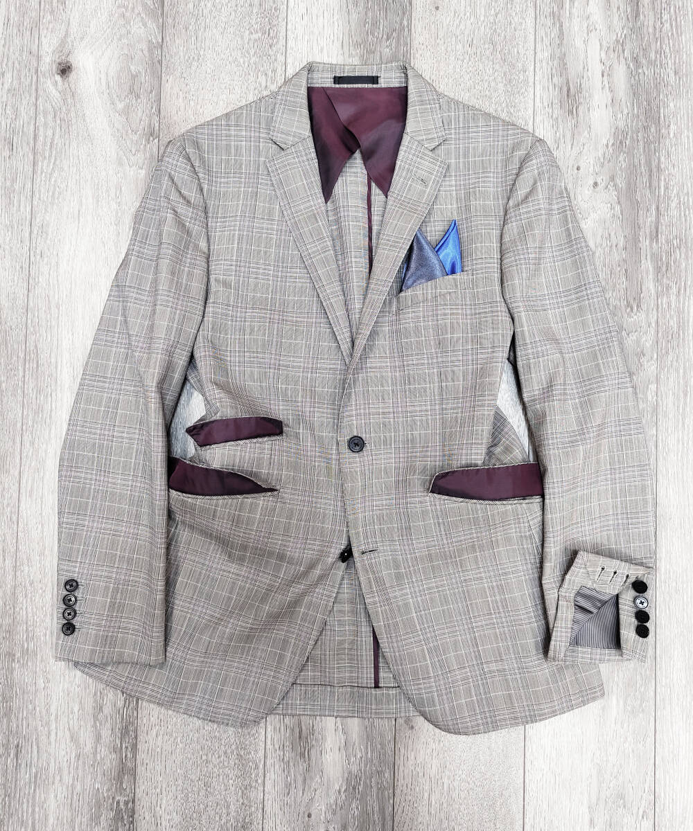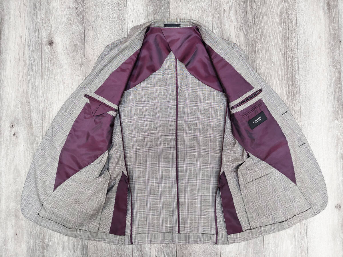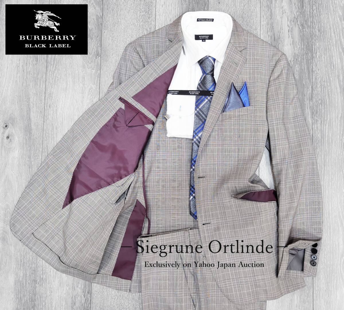 【美品・大きいサイズ】バーバリー ブラックレーベル 本切羽 グレイベージュ グレンチェック柄 スーツ 96-84-175 40L (L2~XLサイズ)