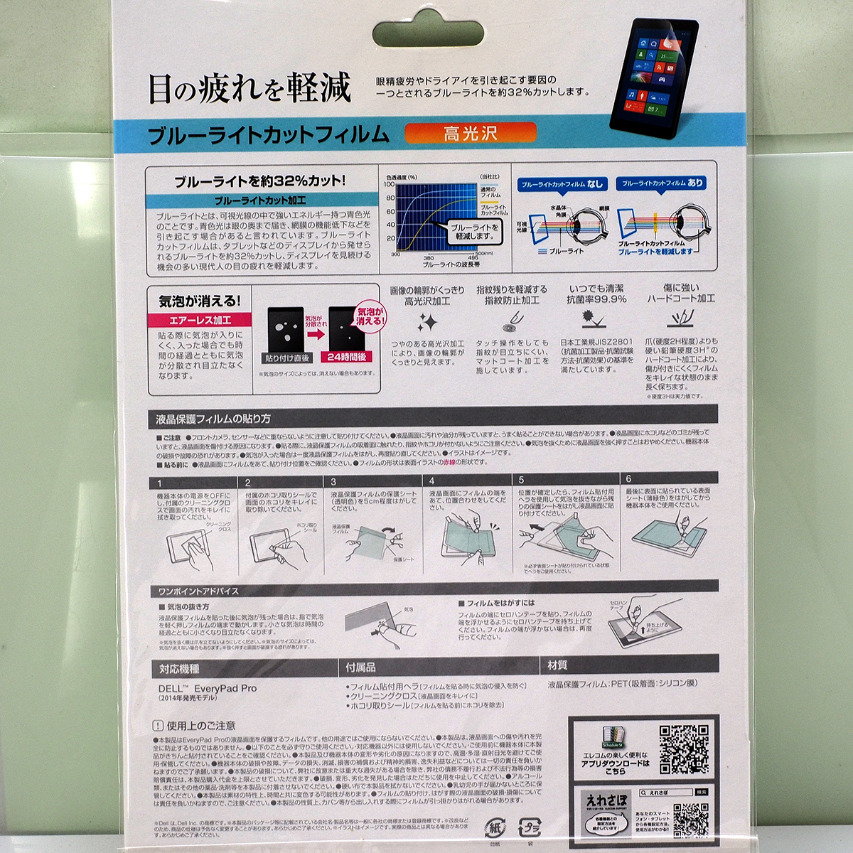 訳アリ EveryPad Pro (YAMADA) 用 ブルーライトカット 高光沢 液晶保護フィルム の未使用保管品になります。