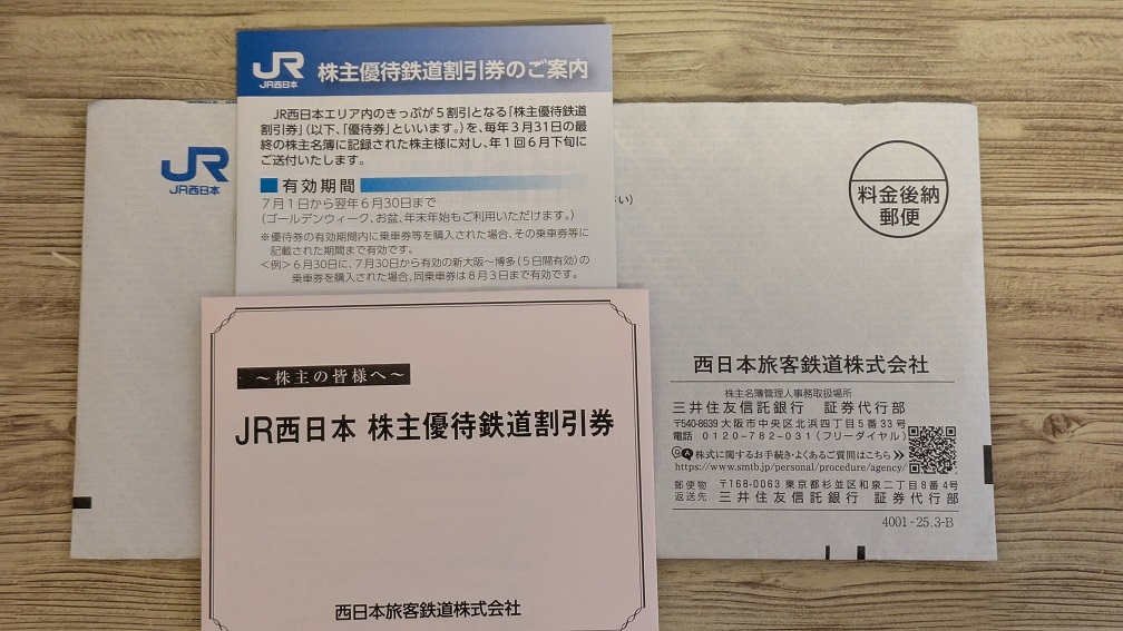商品紹介 | JR西日本の株主優待、鉄道割引券1枚です。 有効期限は、2026年6月30日までです。 年末年始・ゴールデンウィーク等の繁忙期も利用可能です。 ※詳しくは下記のHPをご覧下さい。 https://www.westjr.co.jp/company/ir/stock/shareholder/#yutai |