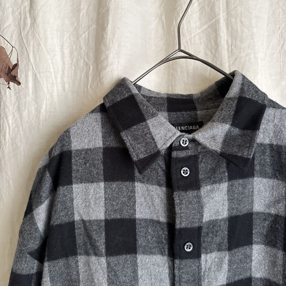 BALENCIAGA バレンシアガ 2019AW フランネル ブロックチェック シャツ 39