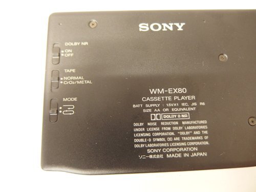 ☆★☆---☆★☆---☆★☆---☆★☆---☆★☆---☆★☆---☆★☆---☆★☆---☆★☆---☆★☆SONY WALKMAN WM-EX80【商品概要】SONY(ソニー)のカセットウォークマン「WM-EX80」です。コンパクトなサイズで、往年のウォークマンらしいデザインが魅力の1台。コレクション用やメンテナンス・修理ベースとしてもおすすめです。※画像に写っているものがすべてです。【サイズ】約10.5×7.5×2.1cm【商品状態】・単三乾電池で通電確認済み・カセットテープは回転せず(再生不可)・実用性未確認(ジャンク扱い)・外装に汚れ、スレ、キズあり※中古品・ジャンク品のため状態にご理解のうえご検討ください。以上のような状態ですが、よろしければどうぞ♪(^^)☆★☆---☆★☆---☆★☆---☆★☆---☆★☆---☆★☆---☆★☆---☆★☆---☆★☆---☆★☆