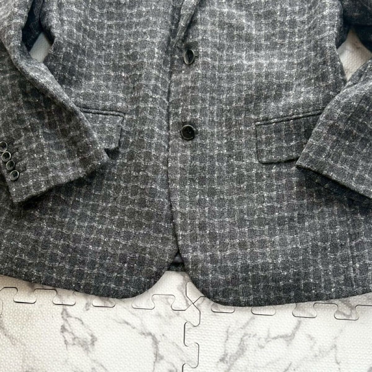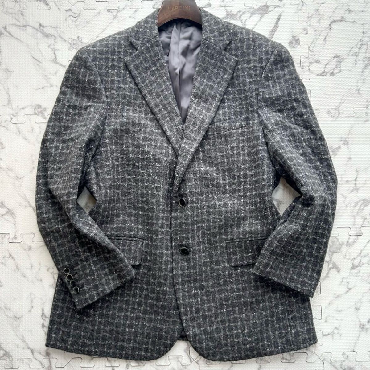 極美品/L相当●LANVIN COLLECTION ランバン コレクション オーダーメイド テーラードジャケット 凹凸立体デザイン ウール グレー系 メンズ