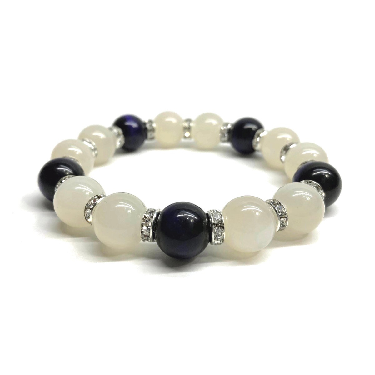 ムーンストーン&パープルタイガーアイ パワーストーン ブレスレット 天然石ブレス (シルバー) 12mm 幸運 開運 メンズ 男性♪