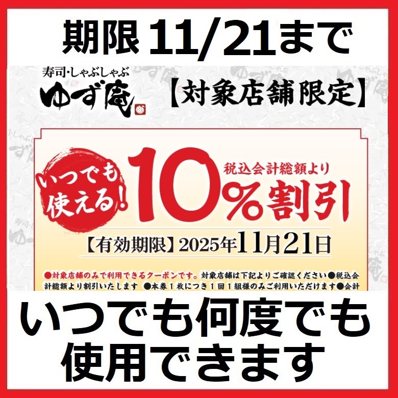 [最新]11/21まで ゆず庵 10%割引クーポン
