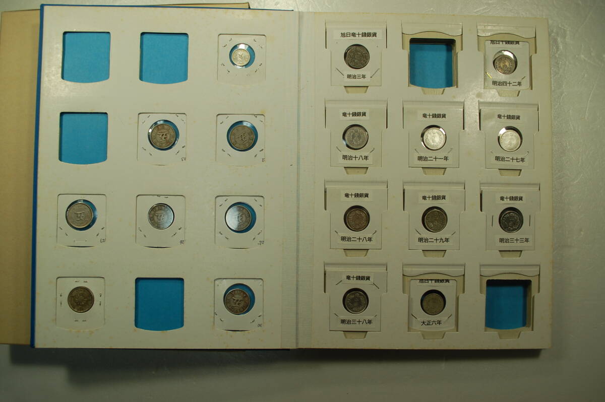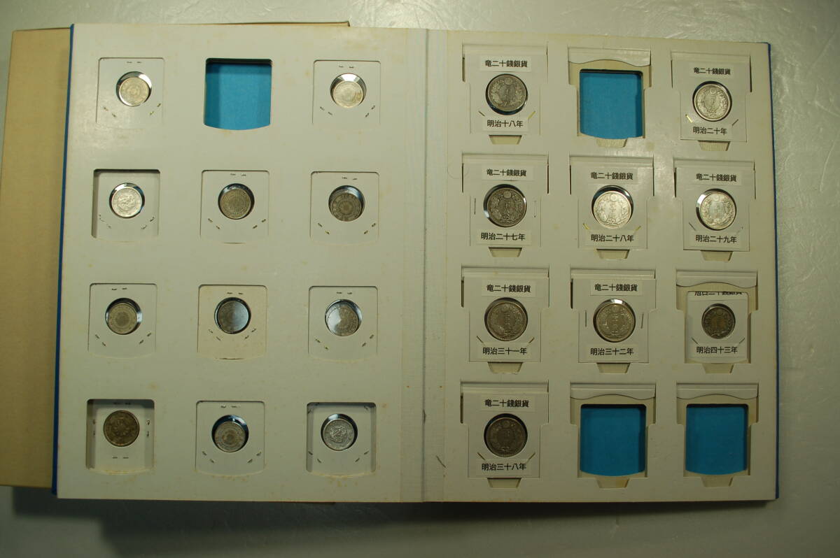 近代貨幣 五銭(竜 菊 稲) 十銭(旭日竜 竜 旭日) 二十銭(竜 旭日) 銀貨 銅貨 合計37枚 コインアルバムに収納  壱