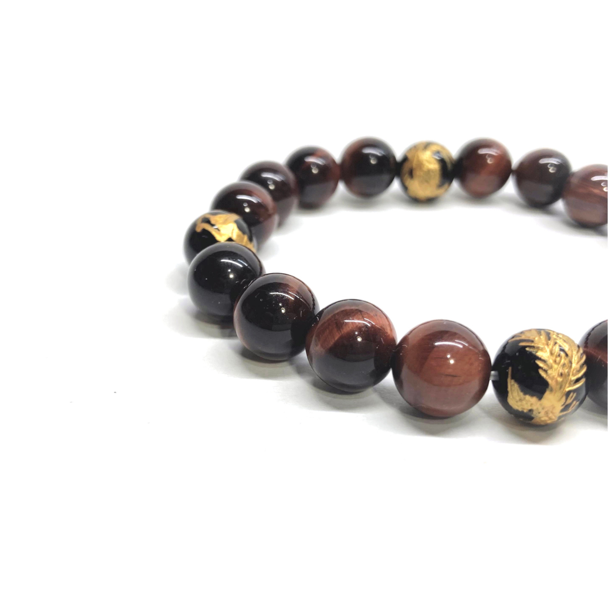 10mm 四神獣金彫オニキス×レッドタイガーアイ パワーストーン ブレスレット天然石 運気上昇 開運 金運 恋愛運 青龍 白虎 玄武 朱雀 ☆