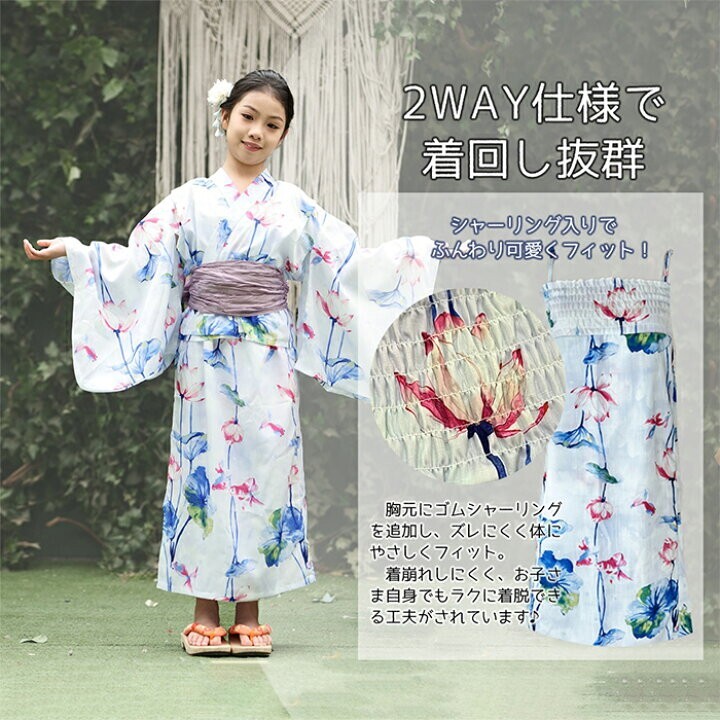 お子さまの特別な夏をより華やかに彩る、2WAY仕様の浴衣ワンピース。