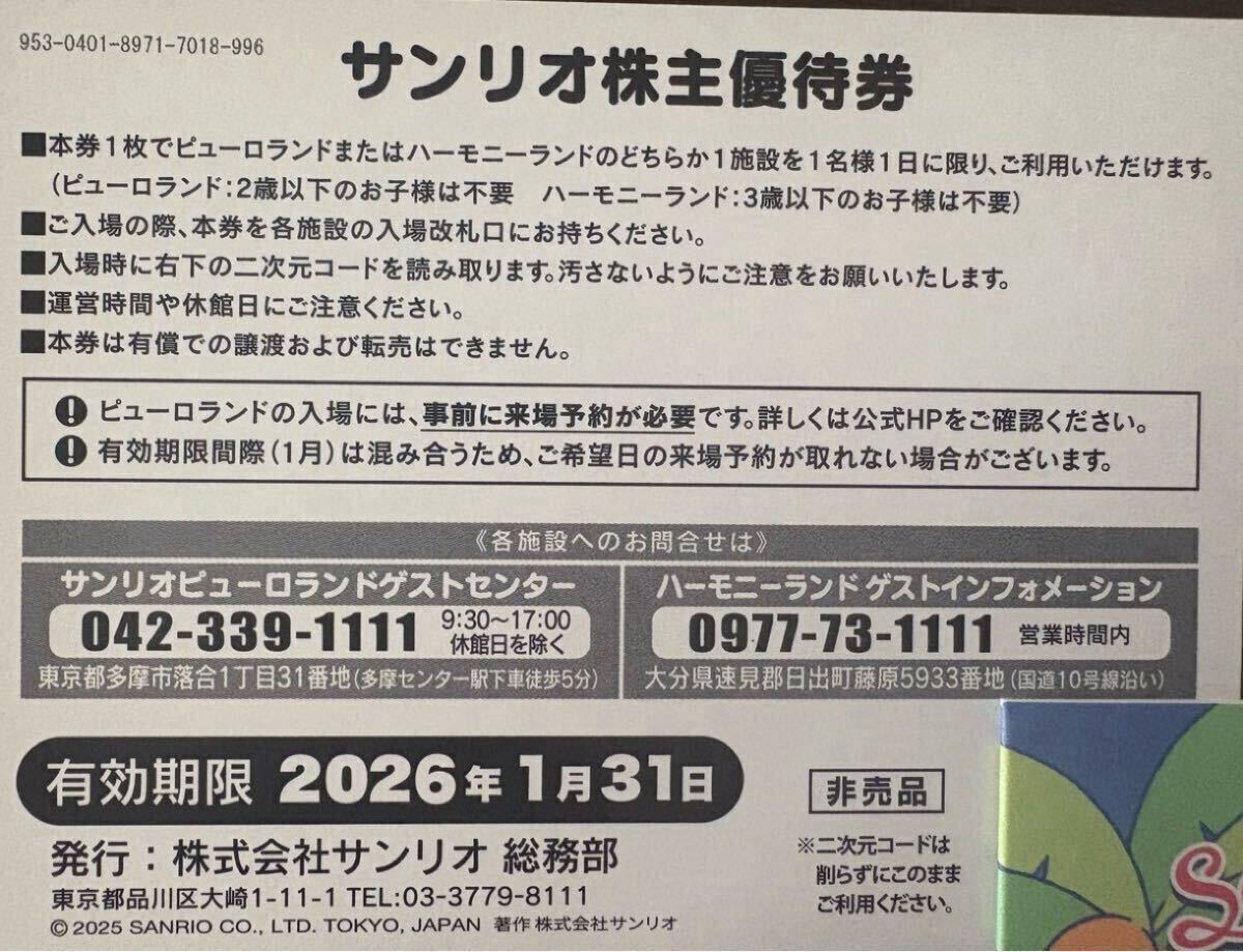 ピューロランドまたはハーモニーランドでご利用いただけます。
