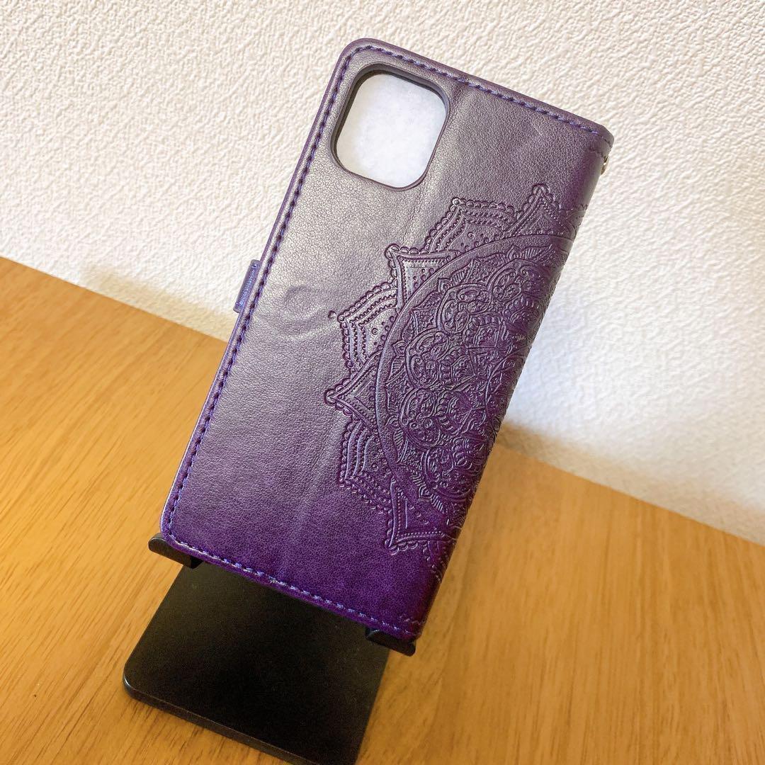 エンボス加工スマホケース 手帳型 iPhone15 パープル