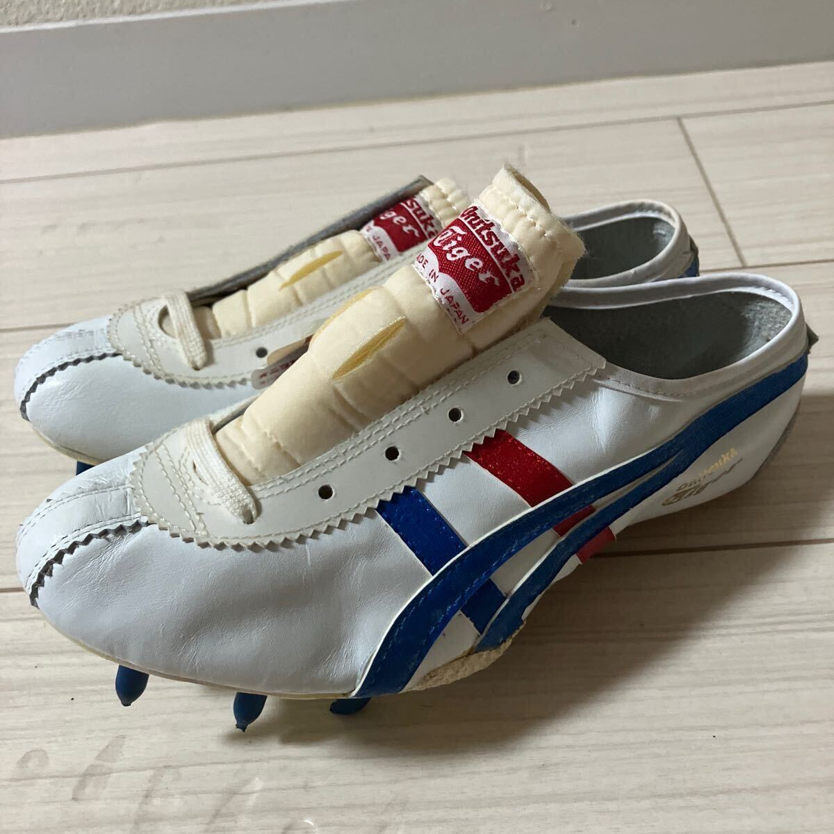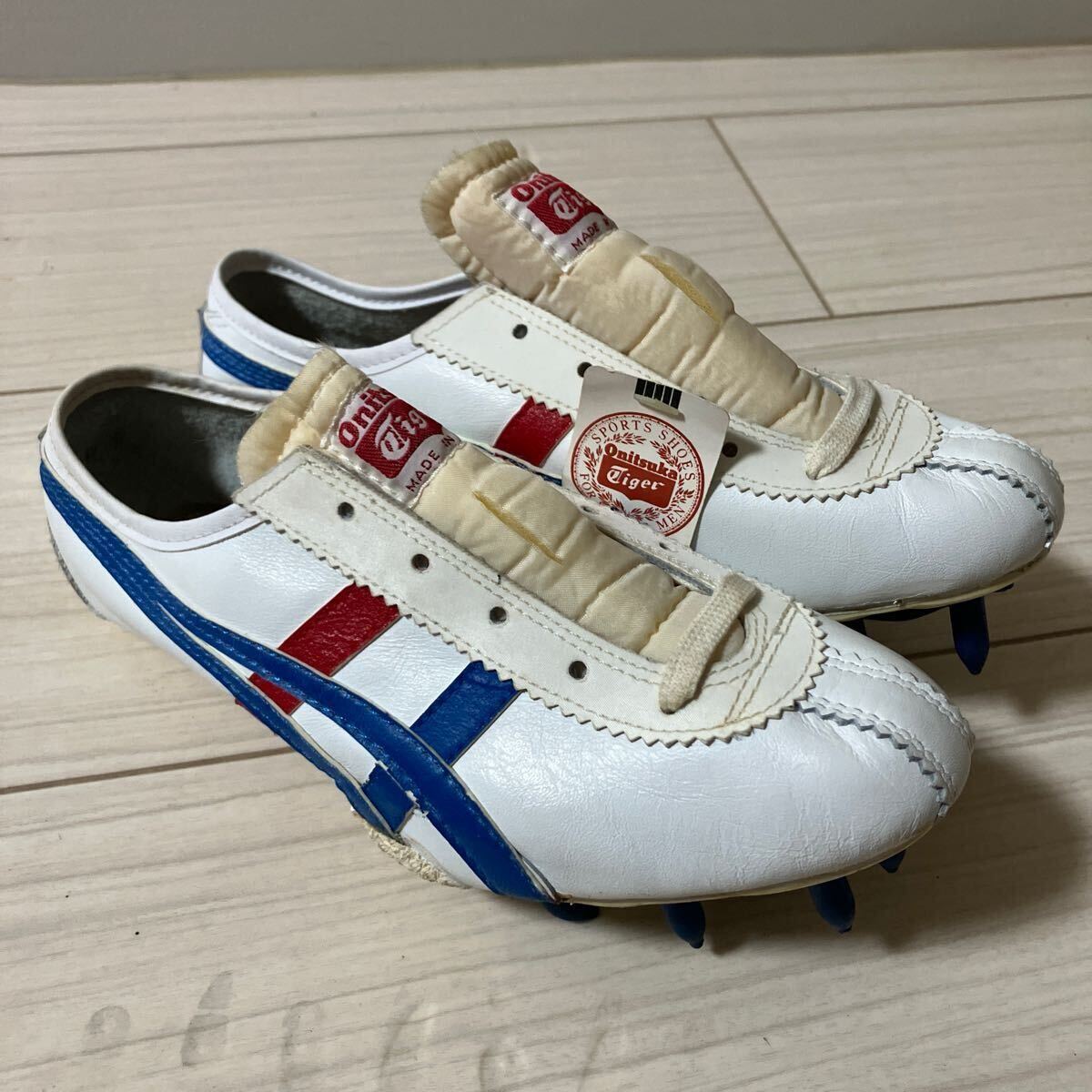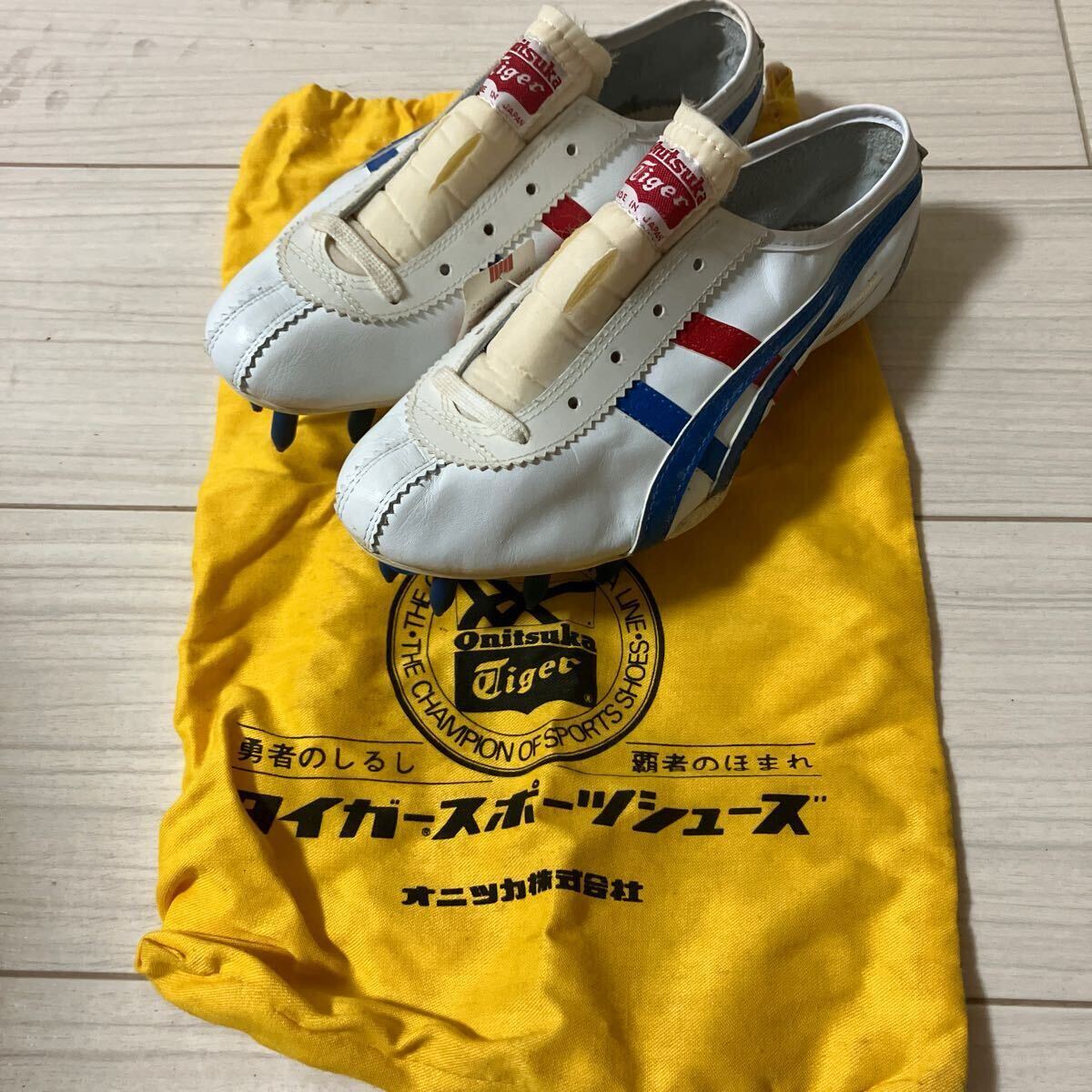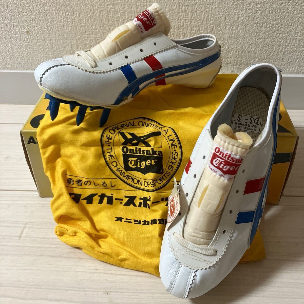 商品名 : 新品未使用 デッドストック 70〜80's Onitsuka Tiger オニツカタイガー ランスパーク 陸上スパイクシューズ 23.0㎝ 表革 トリコロール 元箱 シューズ袋付き 専用工具欠品 日本製 ※外箱が『アシックスタイガー』でシューズ本体、シューズ袋が『オニツカタイガー』ですので社名が変更する移行期の物と思われます。70年代後半から80年代前半頃のものだと思います。