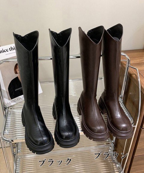 ロングブーツ 厚底ブーツレディース韓国風 24.0cm(38) ブラック