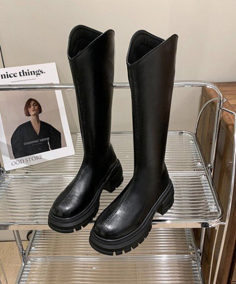 膝下丈ブーツ バックジップジョッキーブーツ 履きやすい おしゃれ美脚脚長ブーツ カジュアル靴 チャンキーヒール 疲れない