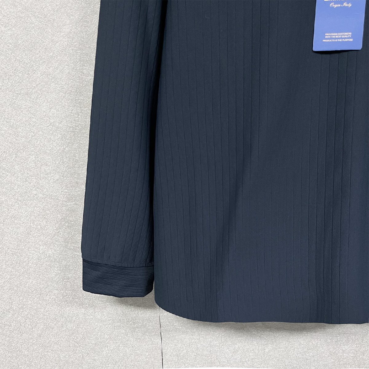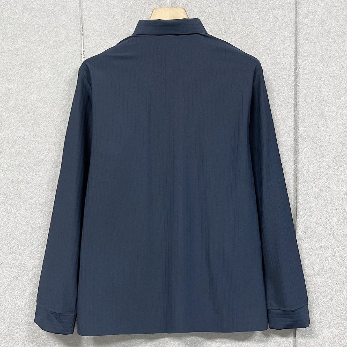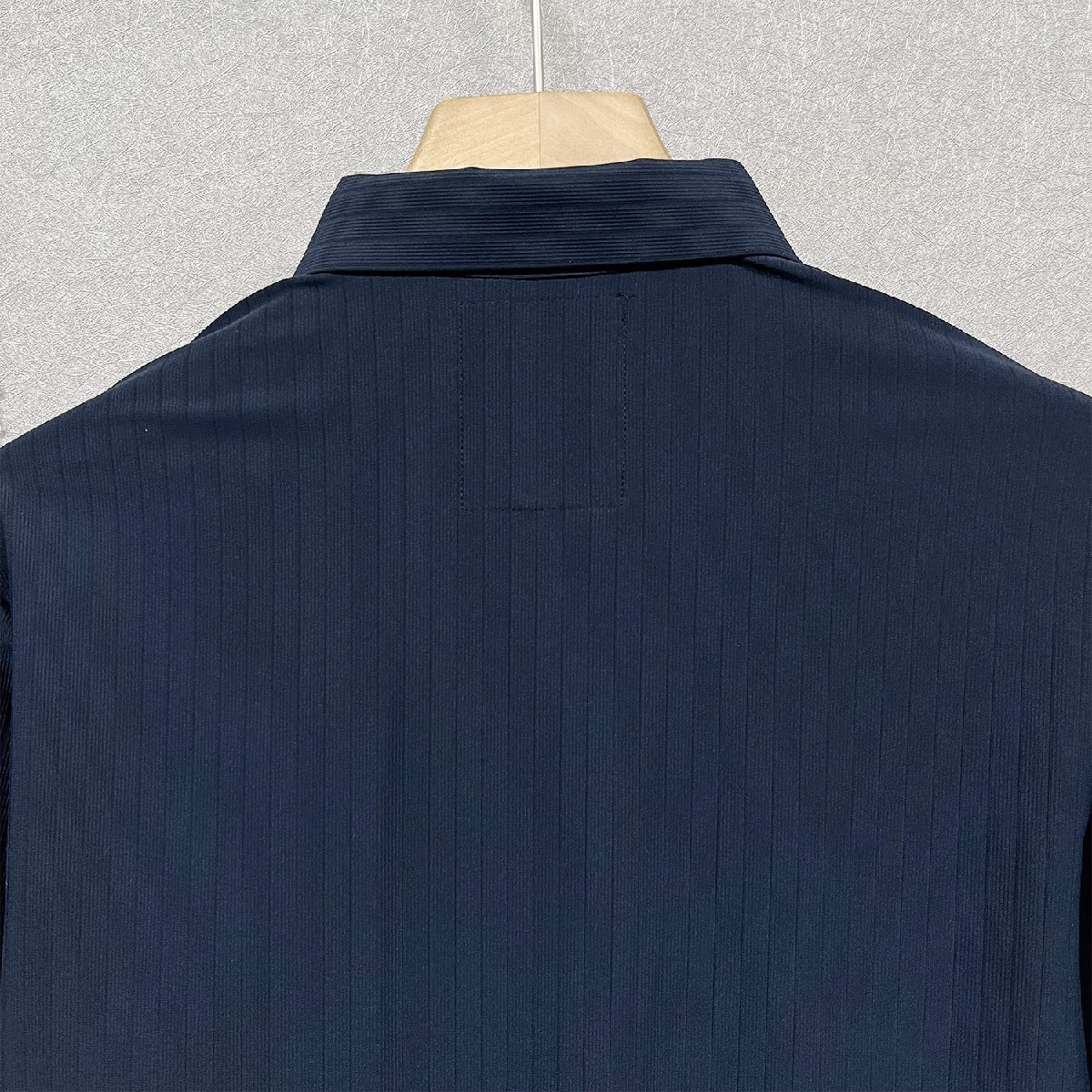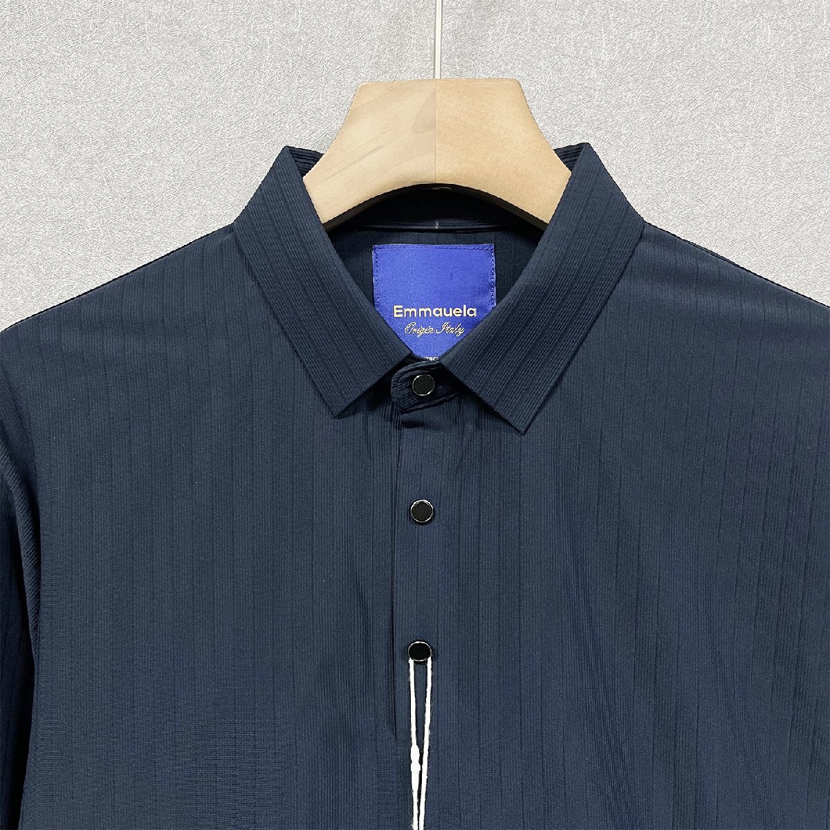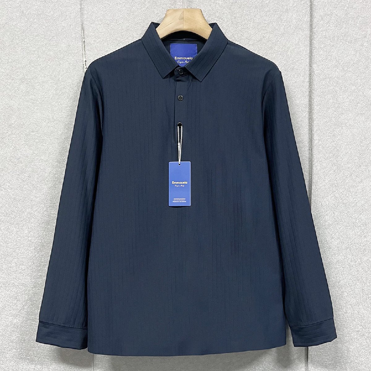 高級・定価4万◆Emmauela・イタリア・ミラノ発◆長袖 ポロシャツ シルク混 柔らか 無地 ストライプ柄 トップス 長袖 ビジネス ゴルフ 通勤 L/48サイズ