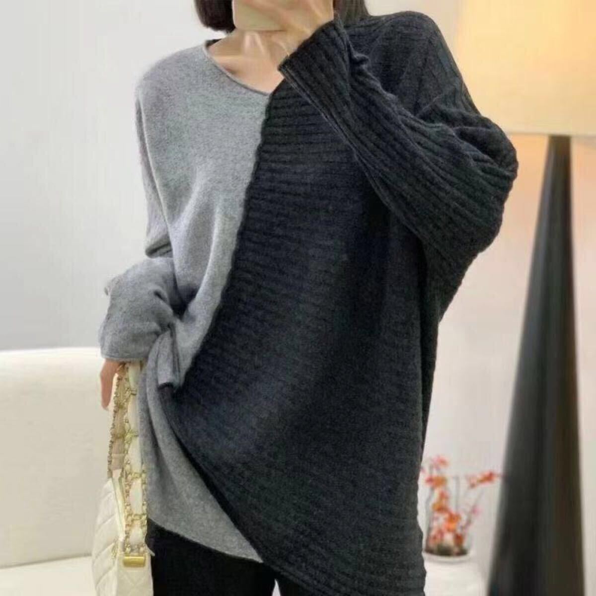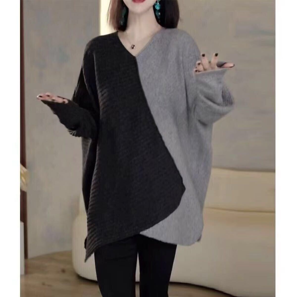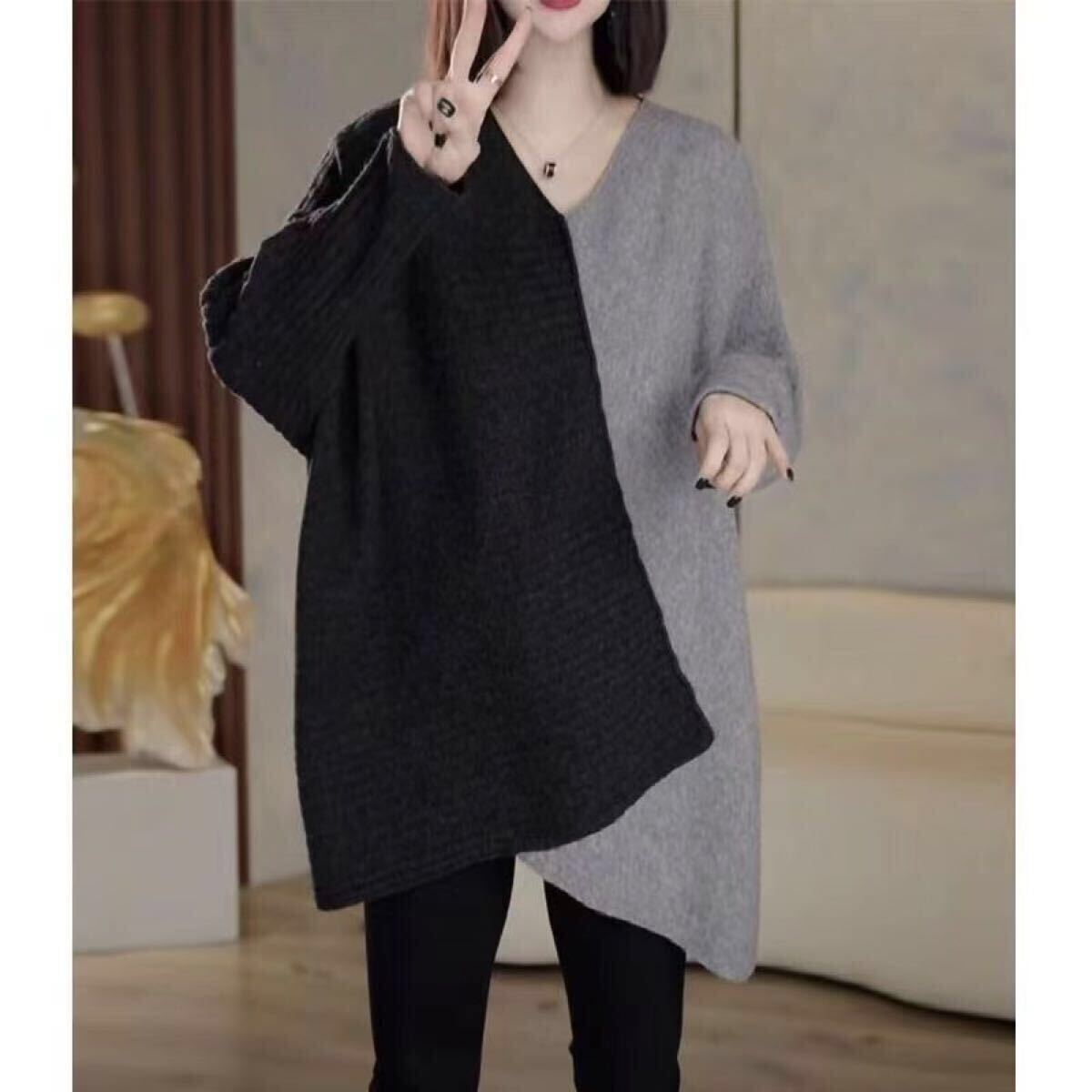 ニット レディース vネックセーター vネックニットチュニック vネック チュニック 大きいサイズ 体型カバー アシンメトリー 長袖 トップス こうもり袖 きれいめニット オフィスカジュアル 大人可愛い 韓国風 ゆったり 可愛い LUGA120(M-6XL)