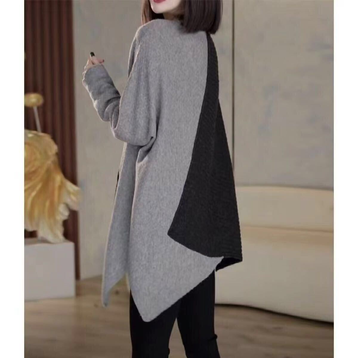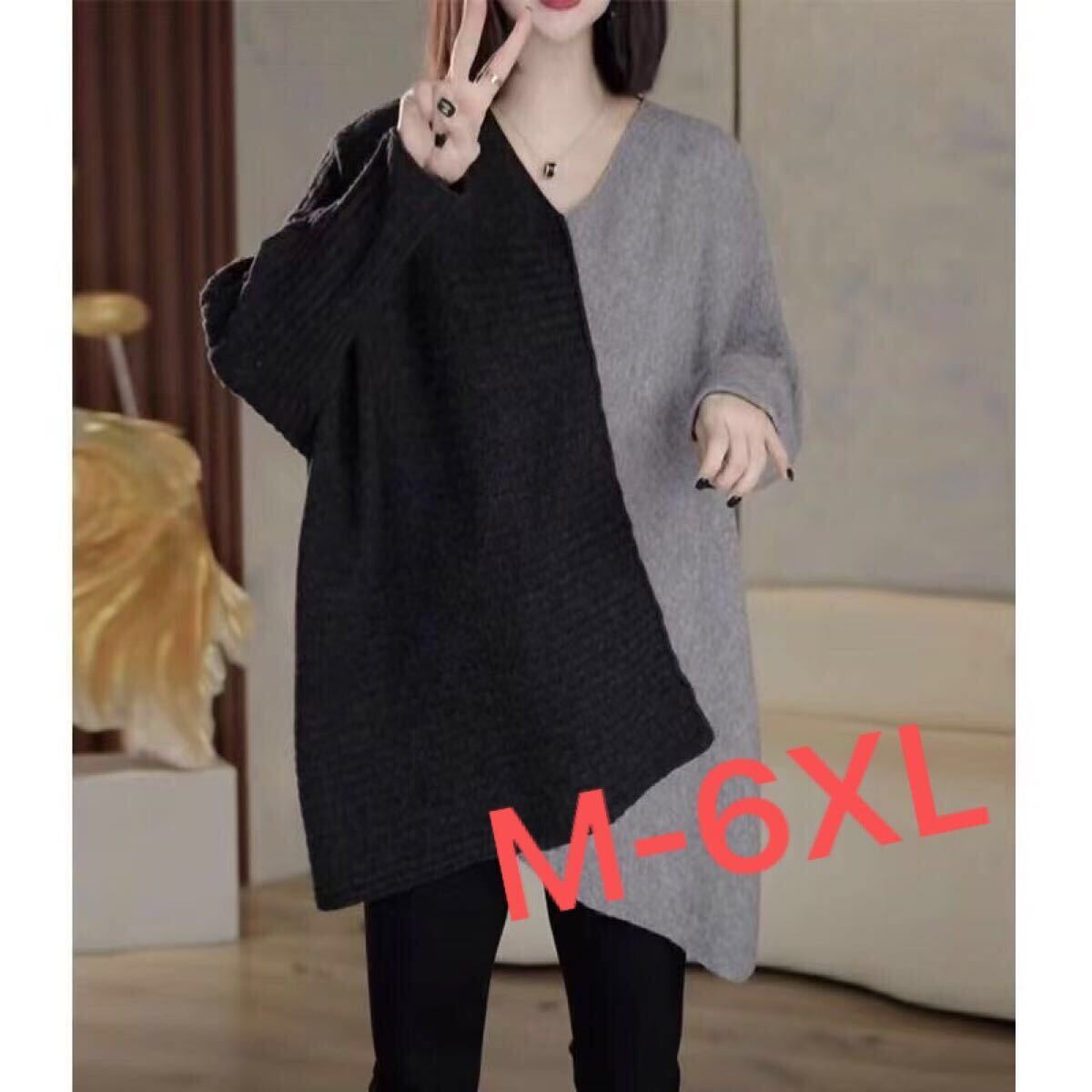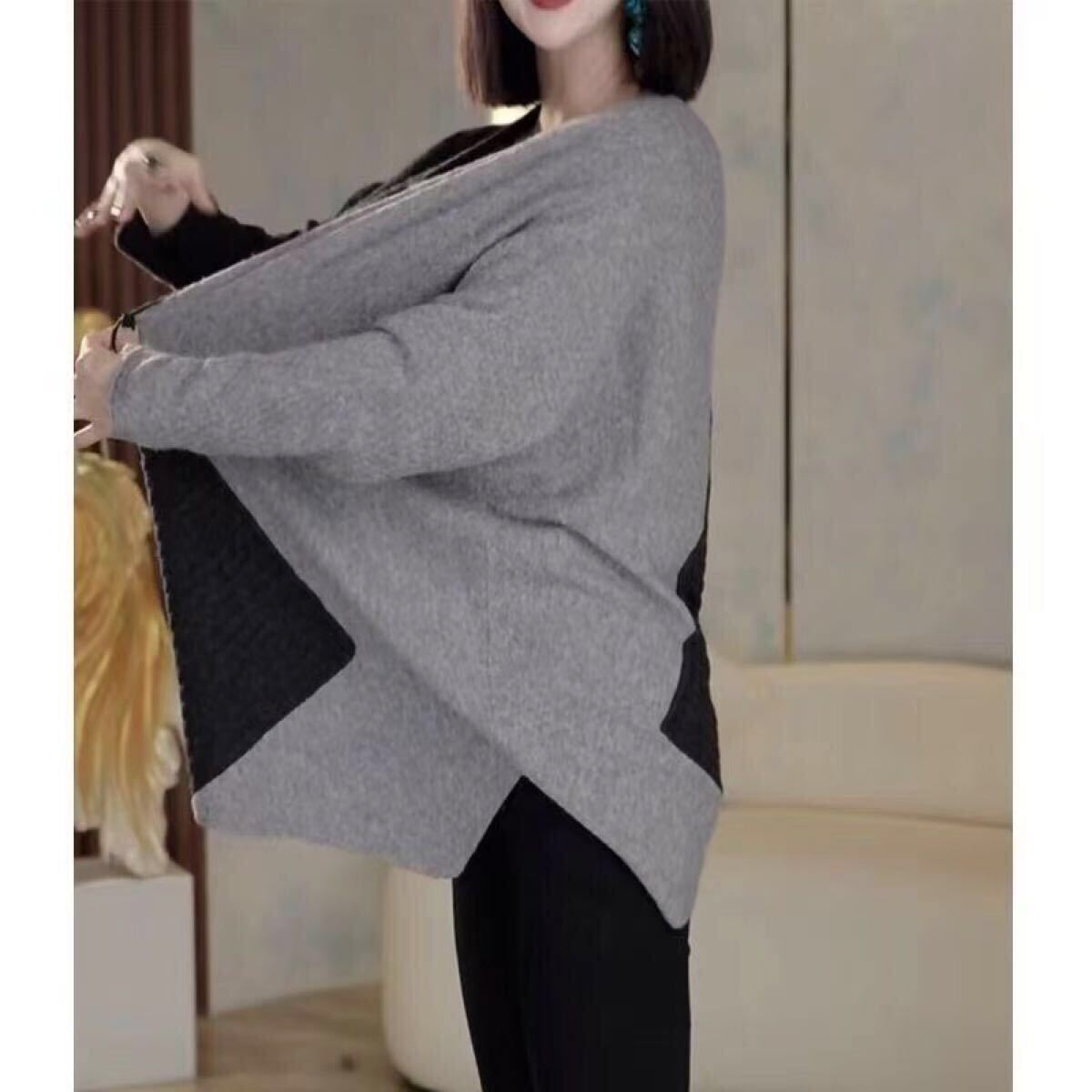 ニット レディース vネックセーター vネックニットチュニック vネック チュニック 大きいサイズ 体型カバー アシンメトリー 長袖 トップス こうもり袖 きれいめニット オフィスカジュアル 大人可愛い 韓国風 ゆったり 可愛い LUGA120(M-6XL)