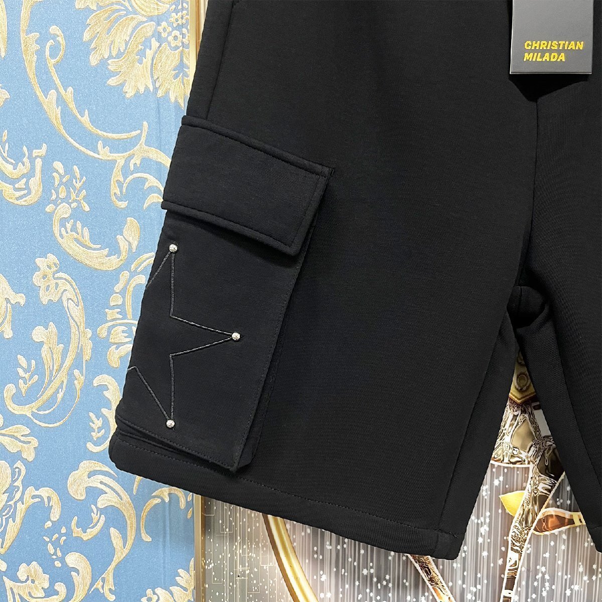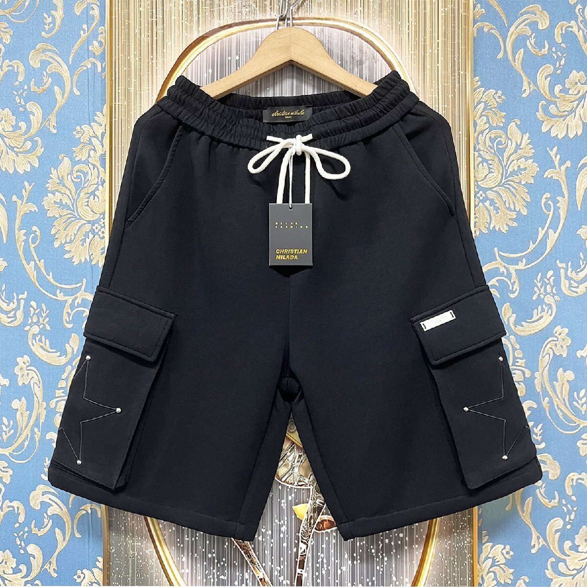最高峰EU製・定価3万★christian milada・ミラノ発・ショートパンツ★上質 薄手 ナチュラル 快適 星柄 半ズボン 短パン スポーツ 夏 XL/50サイズ