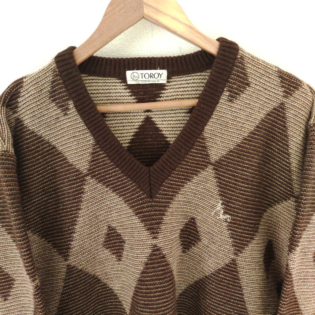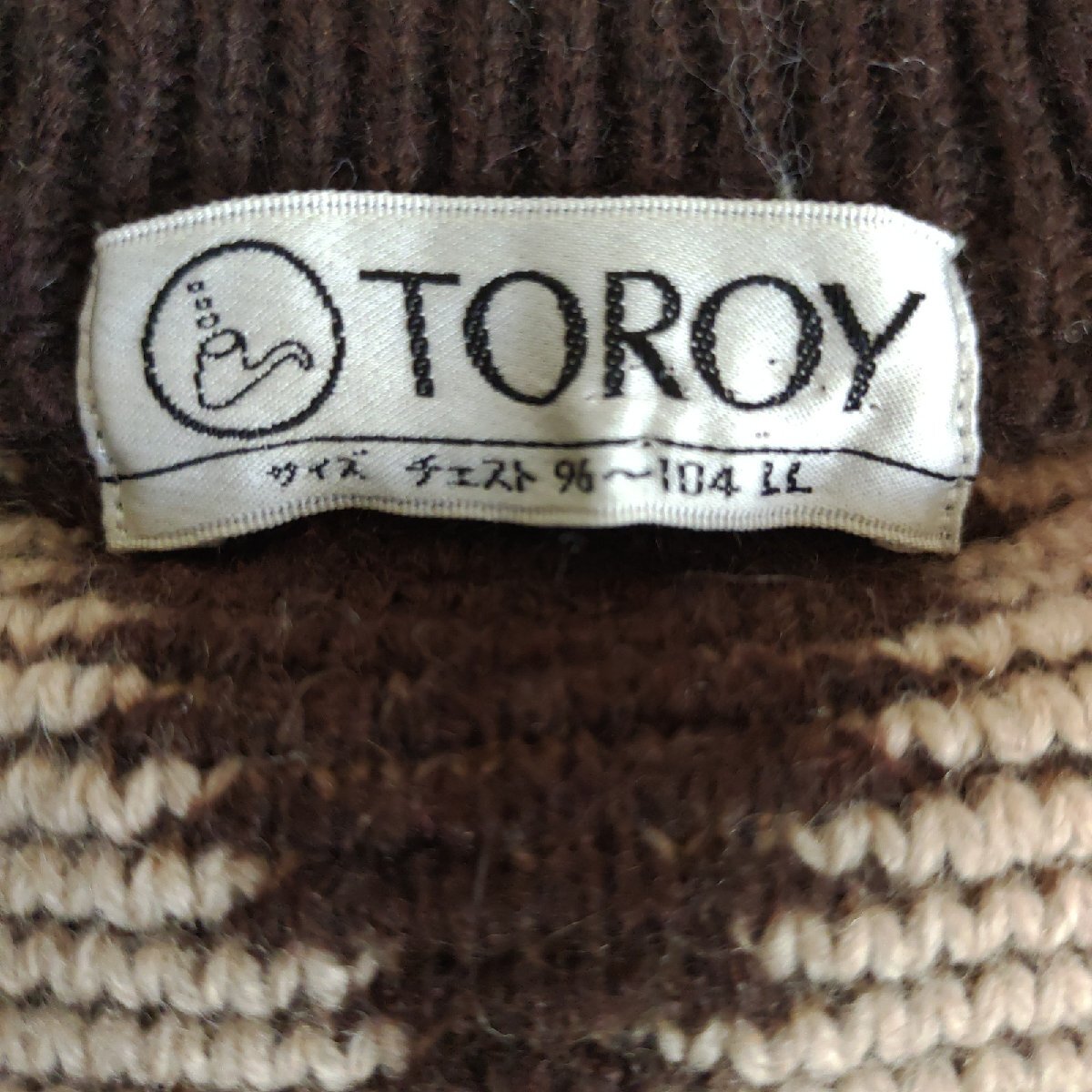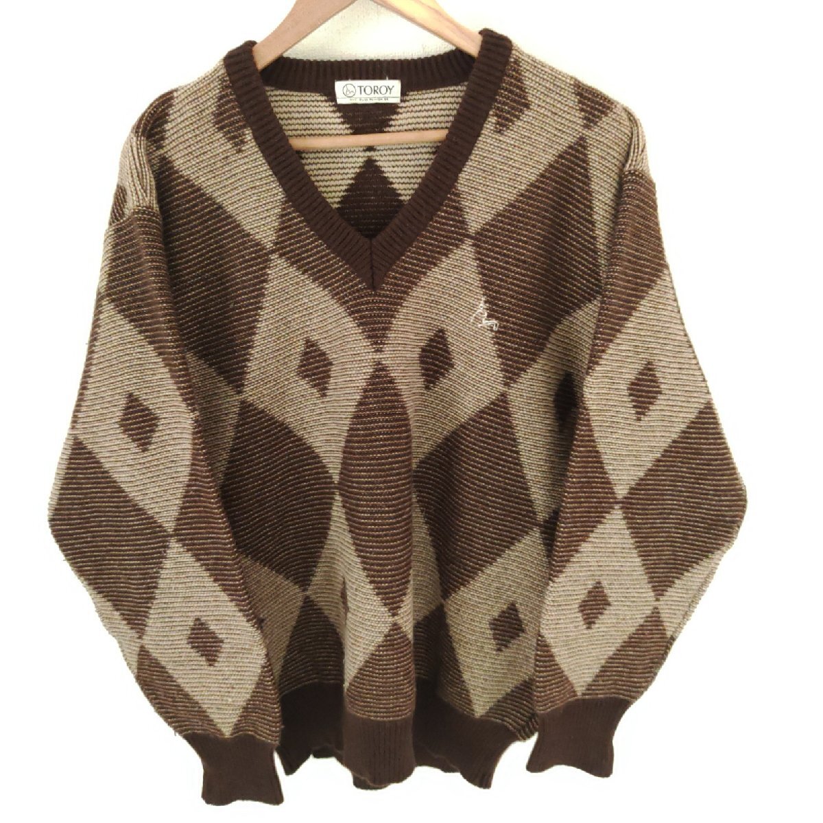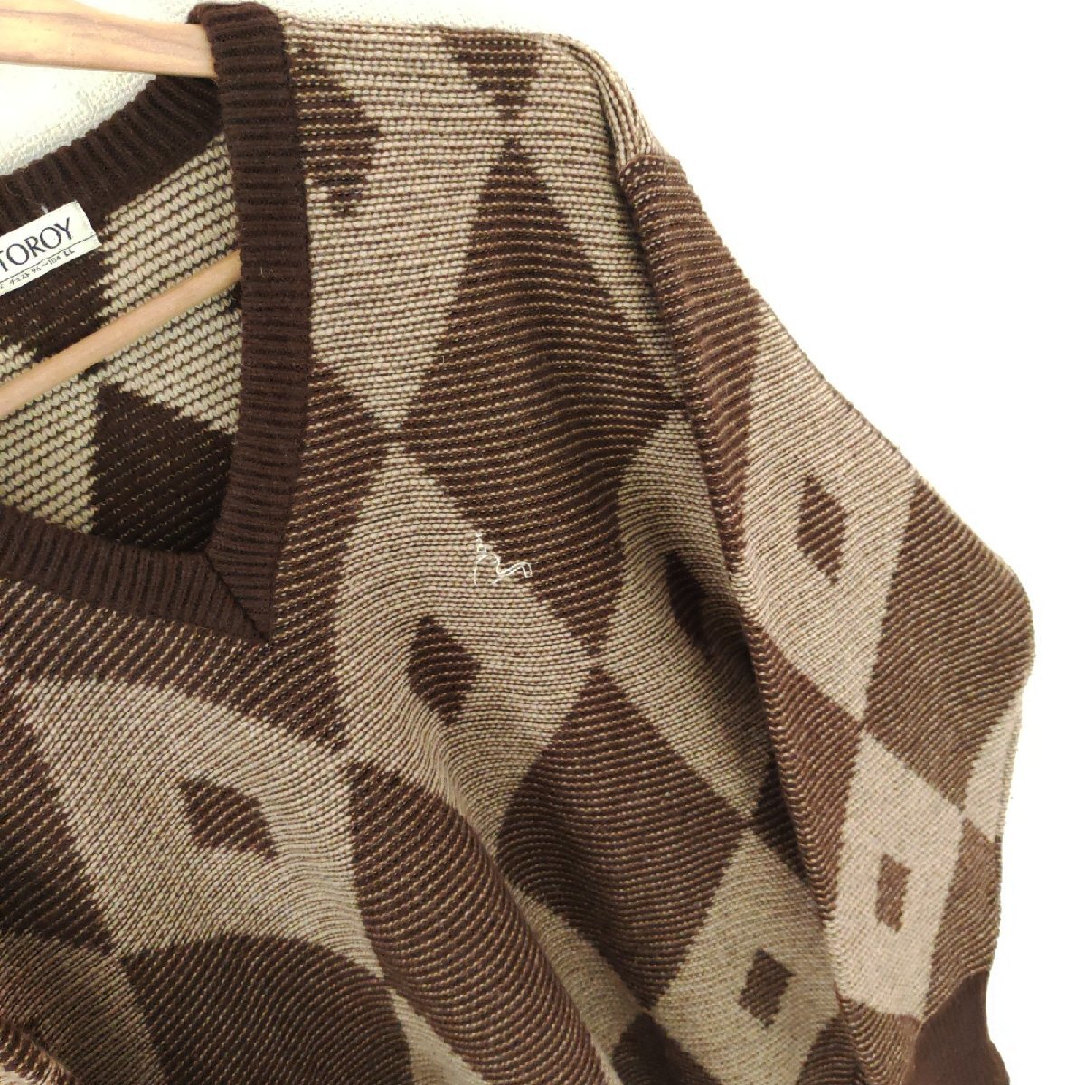 (^w^)b 日本製 TOROY トロイ 80s 90s ビンテージ 長袖 Vネック ニット セーター トップス アウター 着回し 重ね着 ゴルフ 茶 LL O15654DD