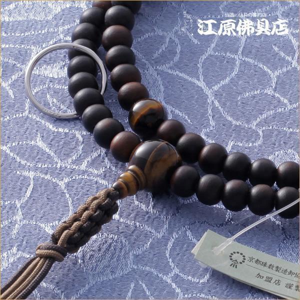 人気のある縞黒檀の数珠でございます。黒檀は艶を消すことで本来持つ風合いがそのまま生 かされ、使い込むほどにしっくりと手に馴染み、深い質感のある色になっていきます。 アクセ ントとして人気の虎目を使用した数珠です。