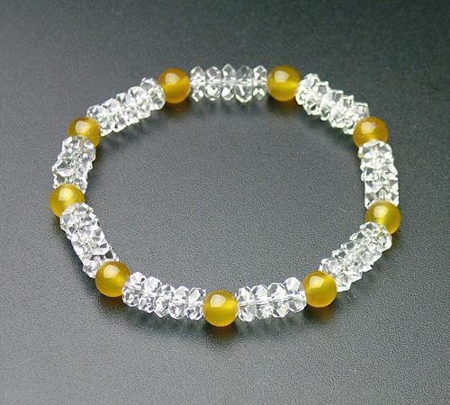 ●平珠水晶切子カットの中に色玉のトパーズがアクセントになった可愛らしいブレスです。