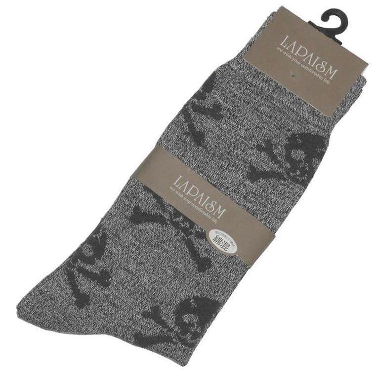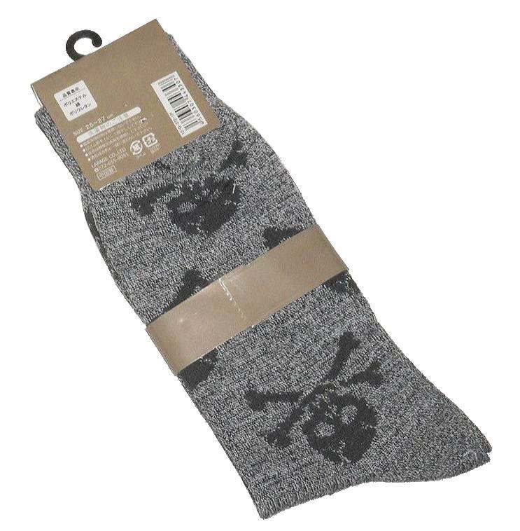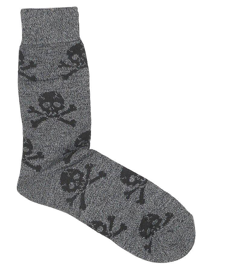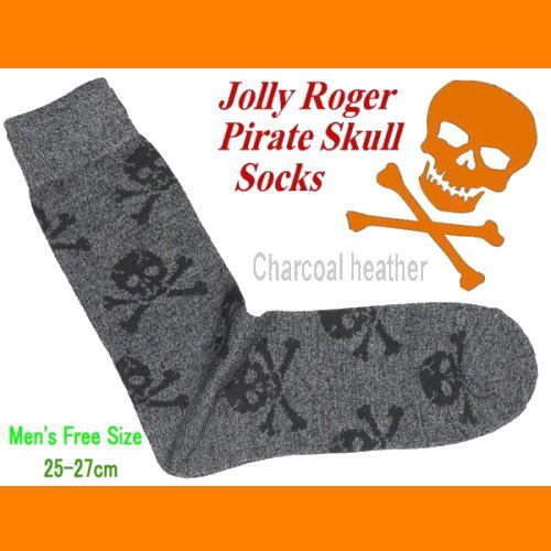 未使用★★★スカル*ドクロ★★★ ジョリー・ロジャー海賊旗柄クルーソックス*チャコール杢:25-27cm★
