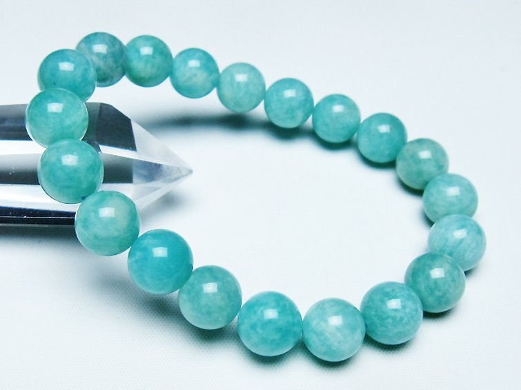 ■商品名: アマゾナイトブレスレット ■商品ID: T161-11870 ■商品重量:約 29.4g ■商品サイズ:内周約:169mm(±5mm)粒直径約:10mm(±0.5mm) 【アマゾナイト(天河石)】 アマゾナイトは古くから「希望の石・ホープストーン」として愛されてきたパワーストーンです。アマゾン川にちなんで付けられた名前とされていますが、実際にはアマゾンでは採掘されません。 長石の一種なのでムーンストーン(月長石)が同じグループにある石になります。 長石であるエピソードとして、高品質なアマゾナイトにはムーンストーンの様なシラーが見られます。 なお、同種の長石類であるマイクロクリン(微斜長石)に微量の鉛が含まれブルーグリーンになったものがアマゾナイトと分類されます。 アマゾナイトはストレスを解消して精神と肉体の調和を図り、思考力、想像力なども高めてくれるとされています。 また、肉体と精神のように対になる要素双方を補い、エネルギー与える効果があると伝えられています。 ⇒ アマゾナイトをもっと詳しく ◆ワンポイント情報 柔らかな色合いがその効果を示すように、持つ人へ優しく寄り添ってくれるようなストーンです。 繊細な感情を持っている自負のある方には特におすすめで、精神面のサポートにより新たな自分へ到達するきっかけを与えてくれるかもしれません。 |