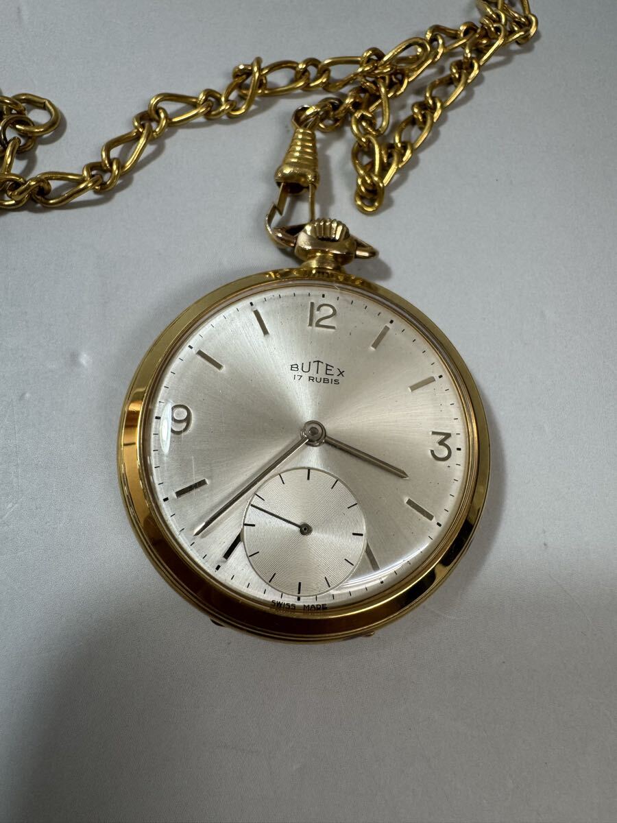 美品 Butex 17石 懐中時計 金張 Plaque or G Swiss made 稼働品 出品します。
