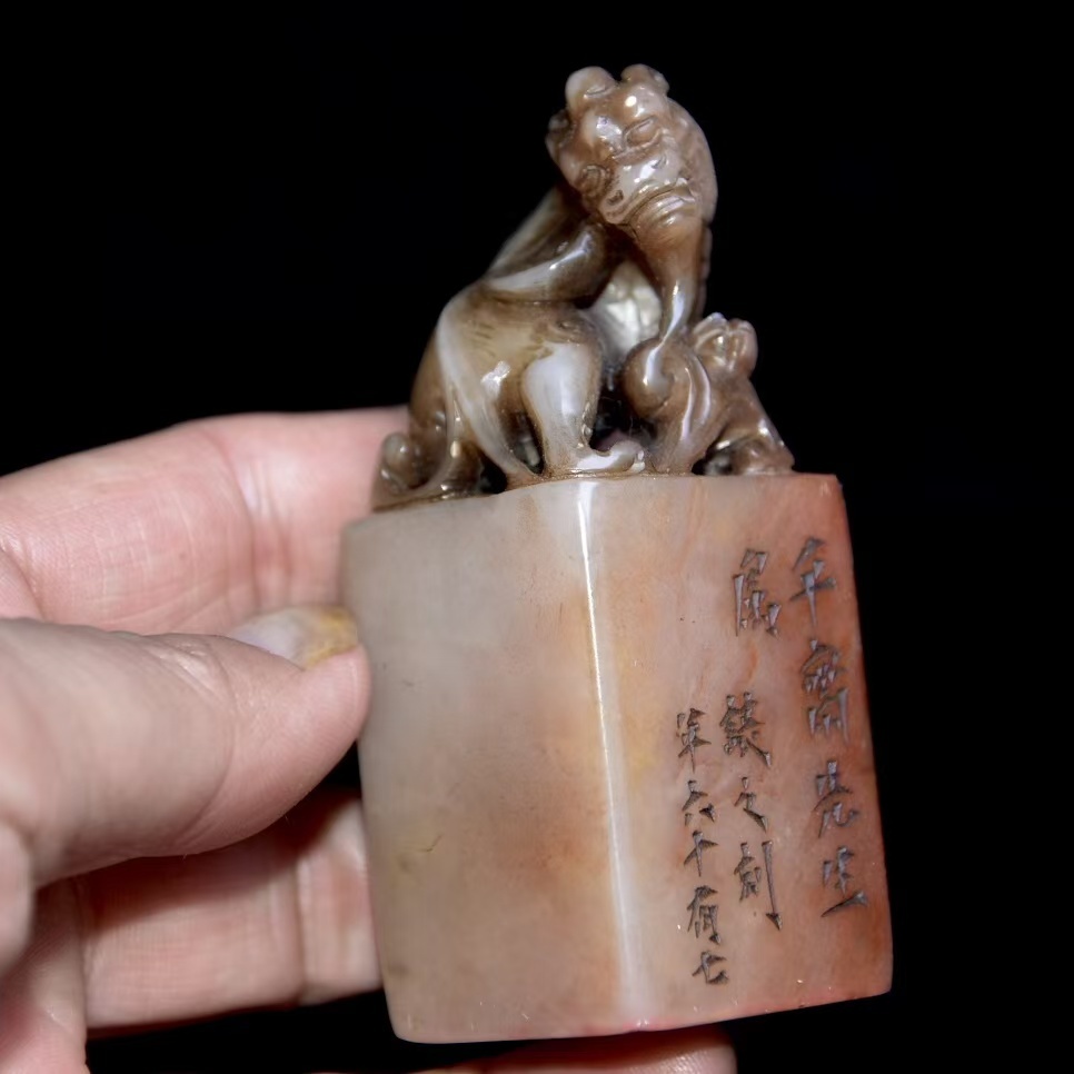 唐物 旧家蔵出 清時代 古寿山石 芙蓉石 神竜 印章 印鑑 天然石 文房具 書道具 古印材 古玉彫 極細工 古置物 古董品 時代物 古美術111