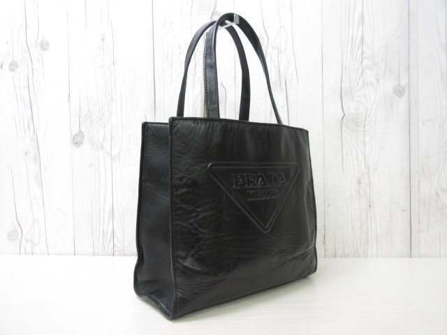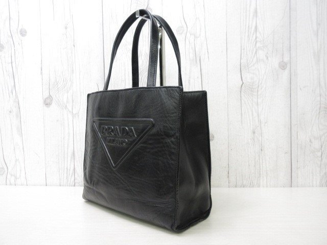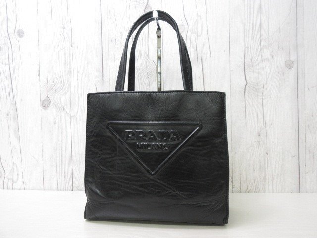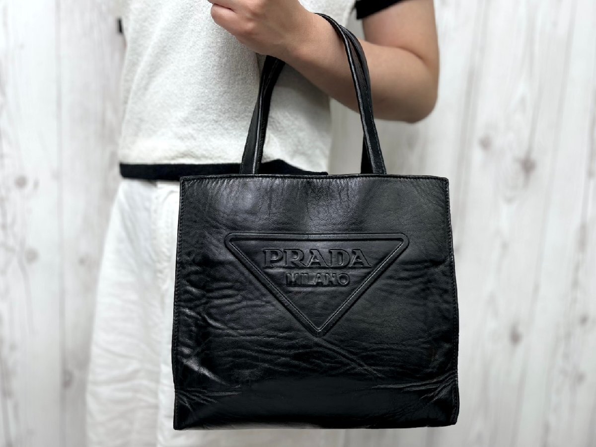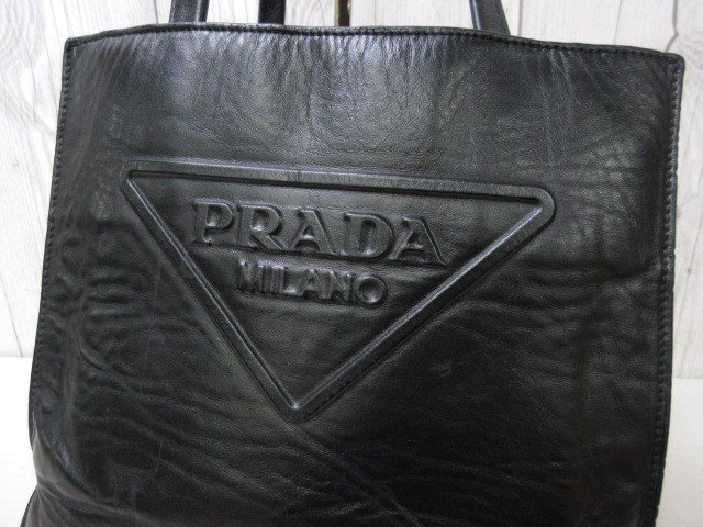 【ブランド】PRADA プラダ 【形】ハンドバッグ 開閉なし・外ポケットなし・内ポケット2 【素材】レザー 【色】ブラック 【A4収納】不可 【サイズ】横約24×縦約21×幅約8×ハンドル約38センチ 【付属品】なし ショルダーを取り付ける金具が付いておりますが、ショルダーは付属しておりません。 【状態】 ⑧美品 未使用品ではないのでスレ汚れなどあるかもしれませんが、素敵なバッグになります。 ※できる限り写真に載せておりますのでご参考ください。 ※※※状態の詳細※※※ ⑩新品・未使用 ⑨極美品 ⑧美品 ⑦一般的な使用感でも美品に近い ⑥一般的な使用感 ⑤多少使用感あり ④使用感あり ①~③ジャンク品・リペア必要 | ||