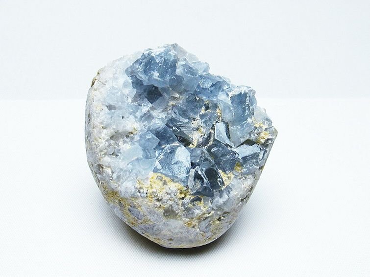 ■商品名: セレスタイト天青石原石 ■商品ID: T756-5000 ■商品重量:約 99g ■商品サイズ: 高約:51mm 横約:45mm 厚約:30mm 【セレスタイト(天青石)】 セレスタイトは和名で「天青石」と呼ばれるように、晴れ渡った空を思わせる爽やかな青色が美しい石です。 「清浄・博愛・休息」を象徴する強力な浄化効果とヒーリング能力を持ち、心身にかかるストレスや苦痛を癒すとされています。 不安やストレスで高ぶった精神を静めて深い安らぎと心身の浄化をもたらしてくれますので、原石などを寝室に置くことで安眠効果が期待できます。 また、相手視点に立って物事を考えられる思考力をもたらし人間関係を円滑にする効果もありますので、恋人や夫婦円満のお守りとしてもオススメです。 イタリアのシチリア島で発見されたセレスタイトですが、現在イタリアでは枯渇状態になってしまい採掘が困難なようです。 そのため現在では主要な産地としてマダガスカルが注目され、マダガスカル産のセレスタイトは清涼感を感じる透明度のある水色が特徴です。 ⇒ セレスタイトをもっと詳しく ◆ワンポイント情報 セレスタイトは非常に柔らかく、母岩が脆い場合があるため、流水につけると石が壊れてしまう場合があります。クリスタルを用いたパワーチャージや、セージや月光浴がお勧めです。 |