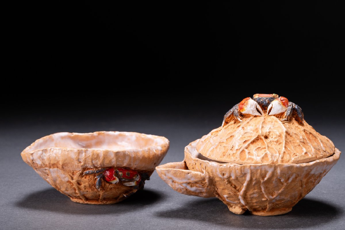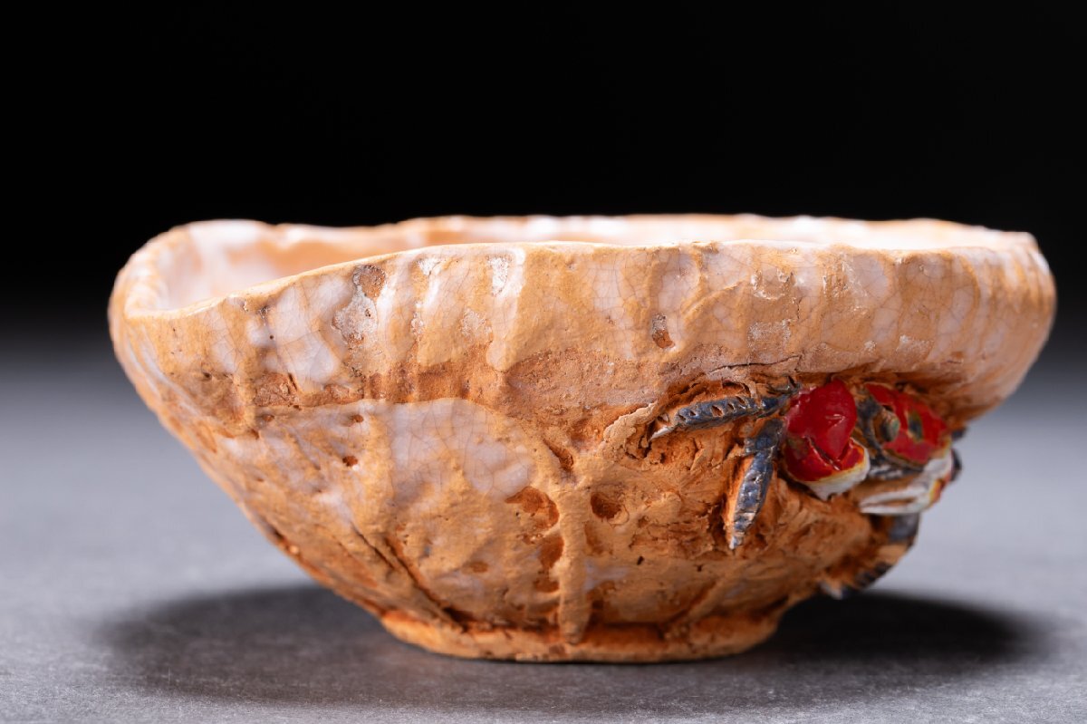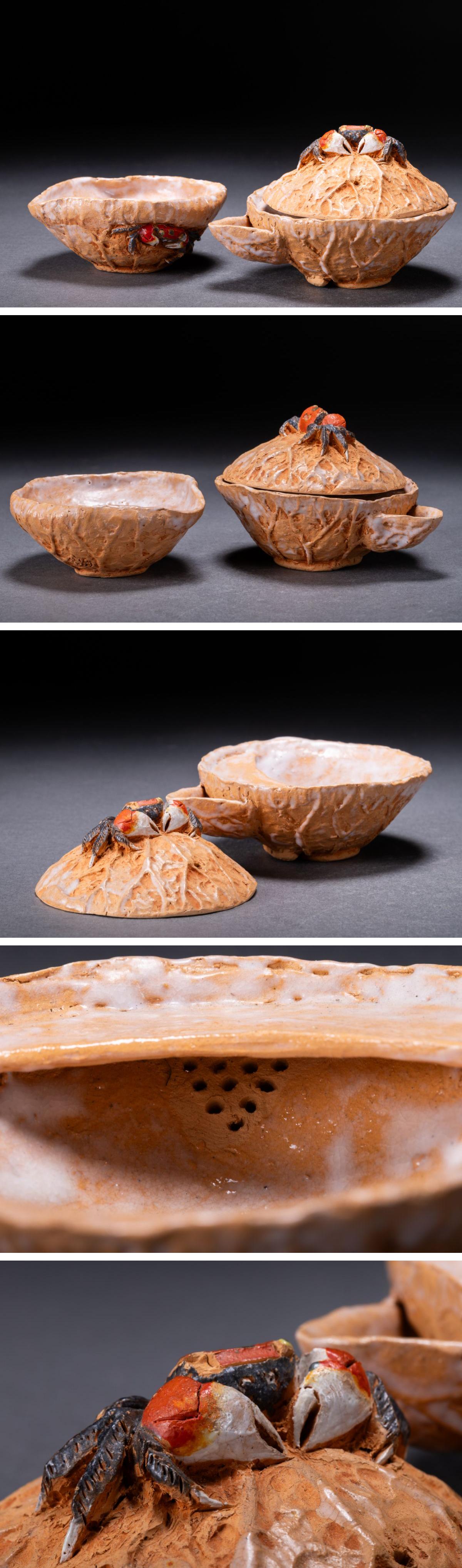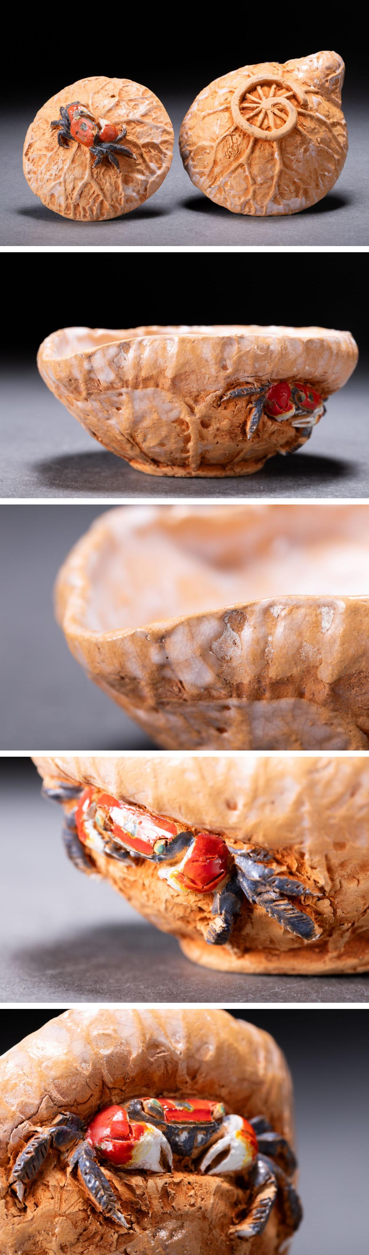 【華】時代舊藏 時代物 二六焼 蟹紋寶瓶 茶煎道具 時代物 古美術 骨董品A25070010-OQ