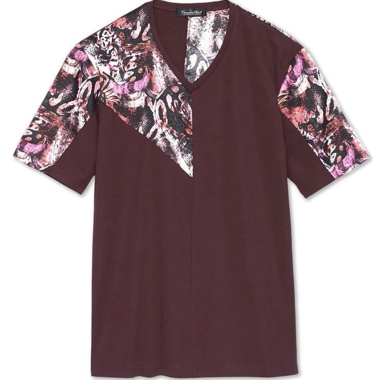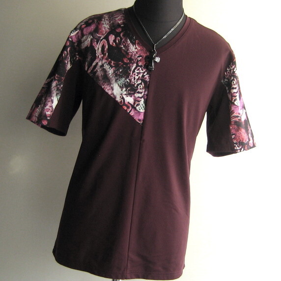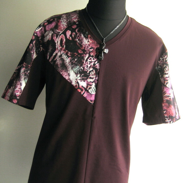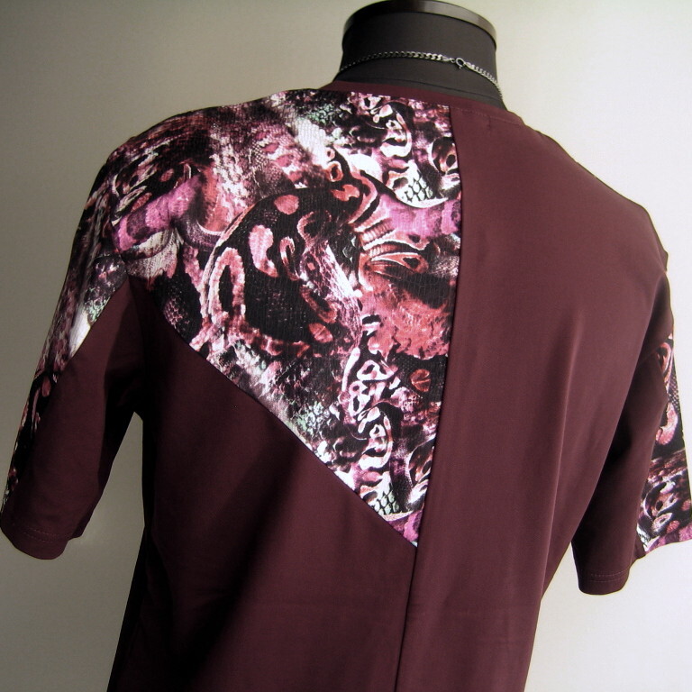■パイソンプリントのシャツ生地をアシメトリーにパネル切り替えしたVネックTシャツ