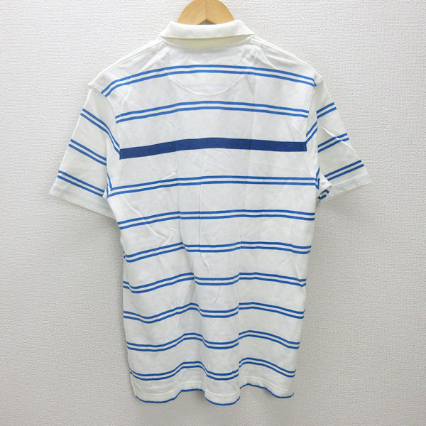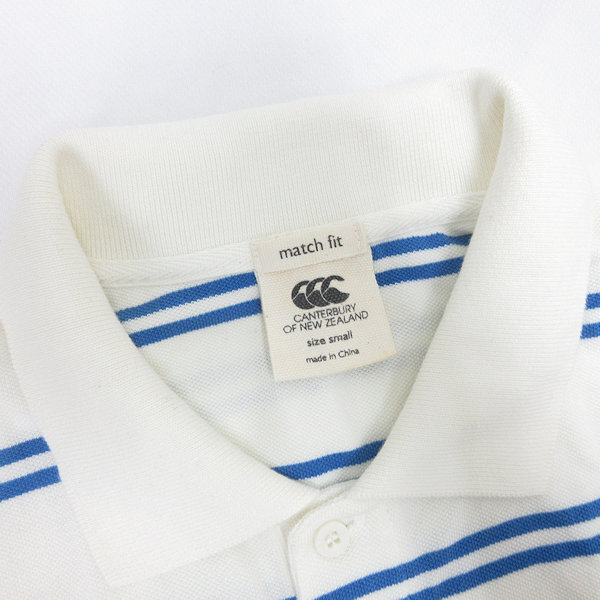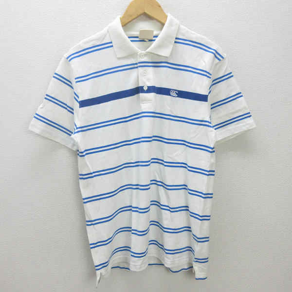 H■カンタベリー/CANTERBURY ボーダー柄 半袖ポロシャツ ラガーシャツ 鹿の子地【S】白青/MENS■35【中古】