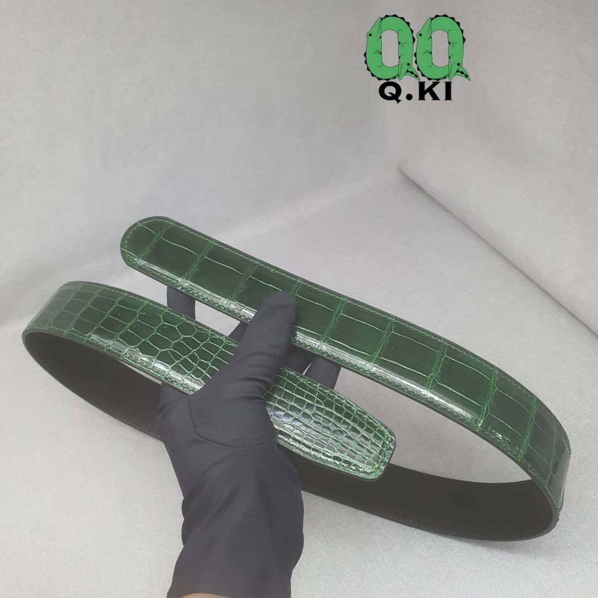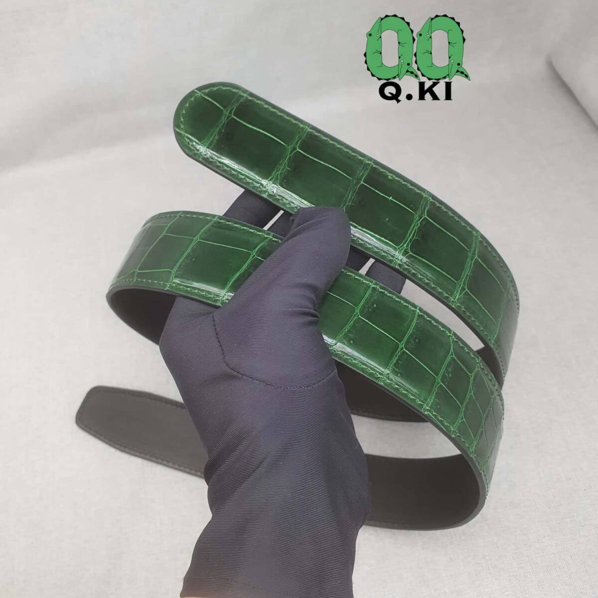 耐久性 クロコダイル 交換用 替えベルト バックルなし ワニ革本物 ピンタイプ 100-125cm 巾3.8cm シャイニング加工 グリーン 多色あり