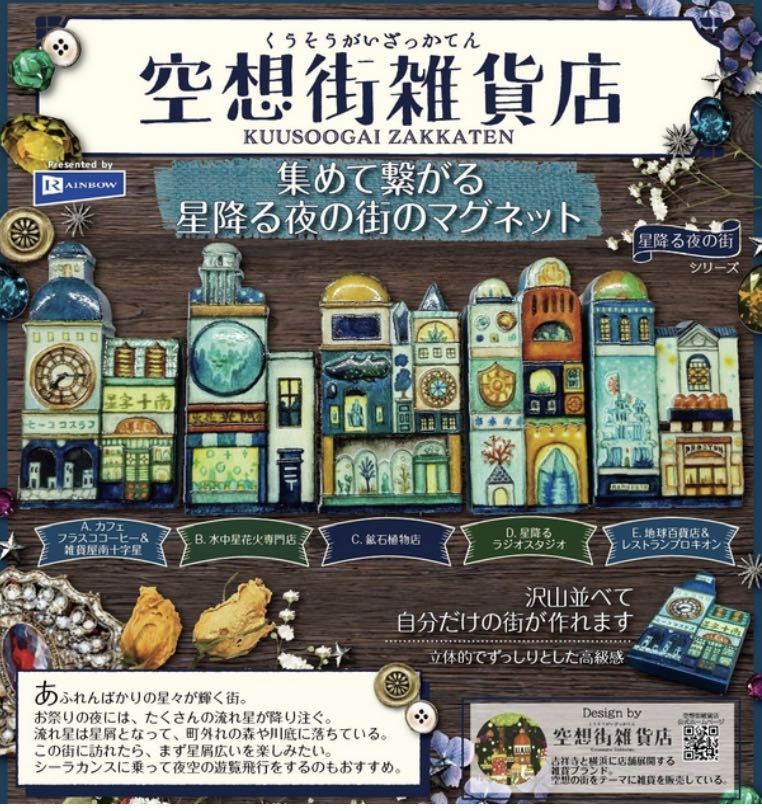 ★空想街雑貨店★集めて繋がる星降る夜の街のマグネット ガチャガチャ B.水中屋花火専門店