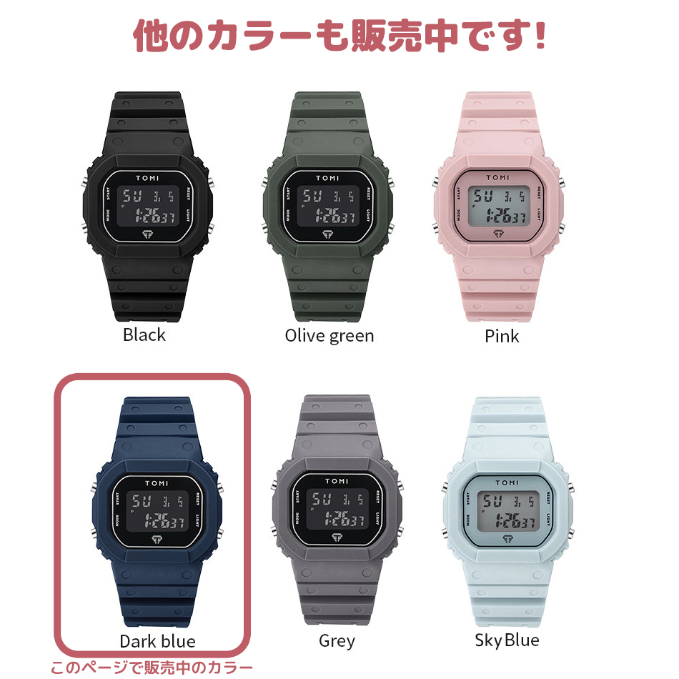 30m防水軽量シンプルデザイン スポーツウォッチ デジタル腕時計 メンズ、レディース くすみカラー ダークブルー (G-shockではありません)