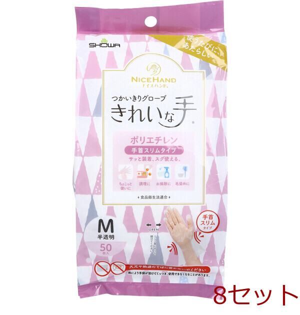 使うたびに、あたらしい。 サッと装着、スグ使える。 ・手首部分がスリムな形状のため、作業時に手袋がズレにくいです。 ・パウダーフリー(粉なし)タイプです。 ・左右兼用です。 ・エンボス加工により、内側がベタつきにくく、着脱がスムーズです。 ・ラテックスアレルギーの元となるタンパク質を含みません。 ・食品衛生法に基づく、食品、添加物等の基準(昭和34年厚生省告示第370号)に適合。 ・ちょこっと使いに・調理に・お掃除に・毛染めに。 個装サイズ:125X250X40mm 個装重量:約88g 内容量:50枚入 製造国:ベトナム 【発売元:ショーワグローブ株式会社】 【用途】 衛生面が気になる場面・調理・手の汚れ防止・お掃除・手あれ予防・毛染め・簡易的な作業などに。 【材料名】 ポリエチレン 【寸法】 全長:29cm 手のひらまわり:24cm 【使用上の注意】 ・体質によっては、かゆみ・かぶれ・発疹等をおこすことがあります。 異常を感じたら使用を中止し、医師に相談してください。 ・薬品や溶剤によっては手袋被膜を透過する可能性があるため、ご注意ください。 非常に薄い手袋のため、薬品や溶剤によっては十分な耐性がありません。 早めに交換してください。 ・熱いものに触れないでください。 火傷するおそれがあります。 ・火元や熱源のそばに置かないでください。 熱により手袋が溶けてくっつき、使用できなくなることがあります。 ・爪先・刃物や尖ったもの等で傷をつけないようご注意ください。 液体がしみこむ原因となります。 ・水や油類等の液体の中での使用を避けてください。 ・絶縁機能はないため、感電のおそれがある電気作業には使用しないでください。 ・保管する時には直射日光を避けてください。 ・本品は使いきりのため、再使用しないでください。 ・手袋を廃棄する際は、各自治体の区分に従い適切に処分してください。 注意事項 ※予告なく成分・パッケージが変更になることがございます。 予めご了承ください。 *予告なく成分・パッケージが変更になることがございます。予めご了承ください *ダンボールを使用して発送する場合には、入数以下の個数の場合、 中古ダンボールを使用する場合があり、ご注文の商品とは異なるダンボールになる場合があります。 あらかじめ、ご了承ください。 |