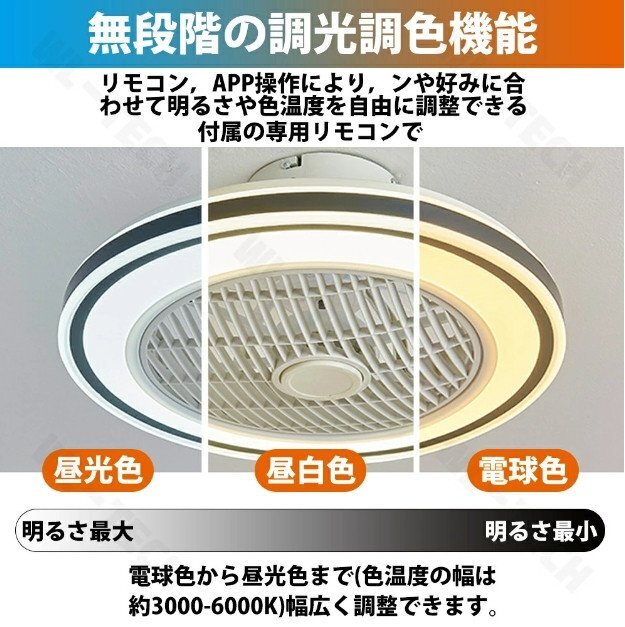・リモコン付き:調光調色、タイマー設定、風量調節など全ての操作が可能なリモコン式、気分やシーンに合わせて明るさや色調を自在に調整できます。
