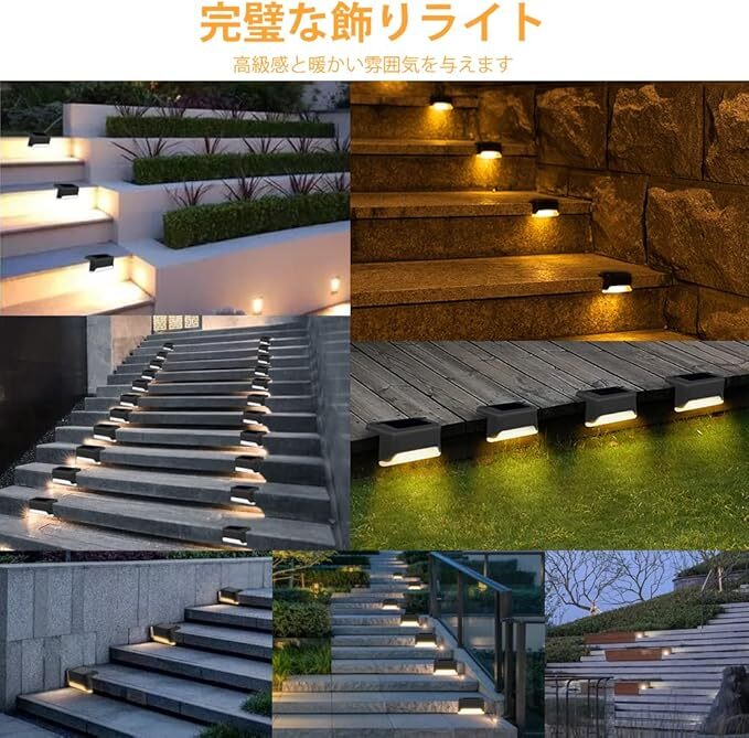 【新品】【4個+2個予備set】LED 暖色 ソーラー充電 テラスライト フェンスライト ソーラー 警告 階段ライト ガーデンライト