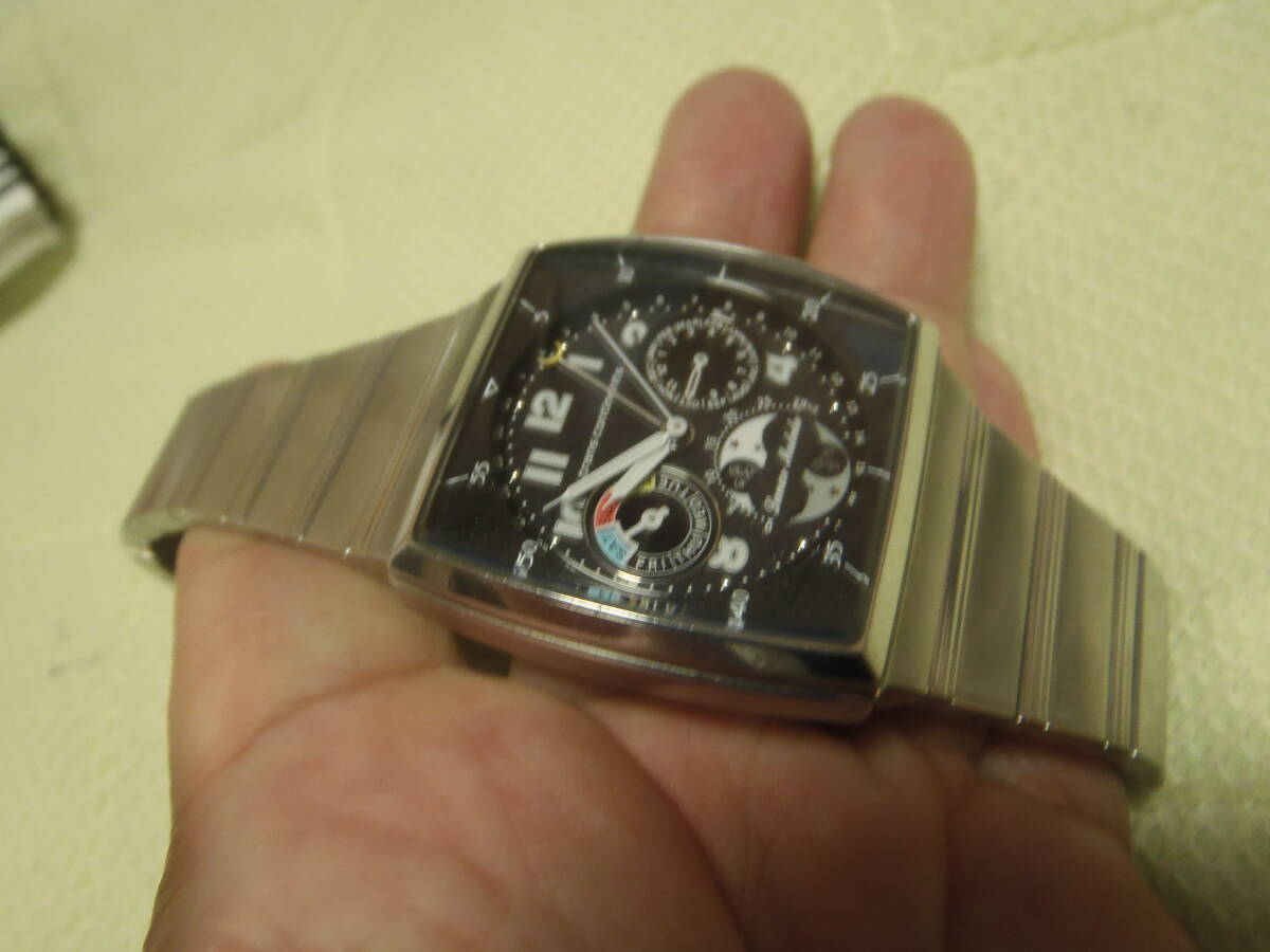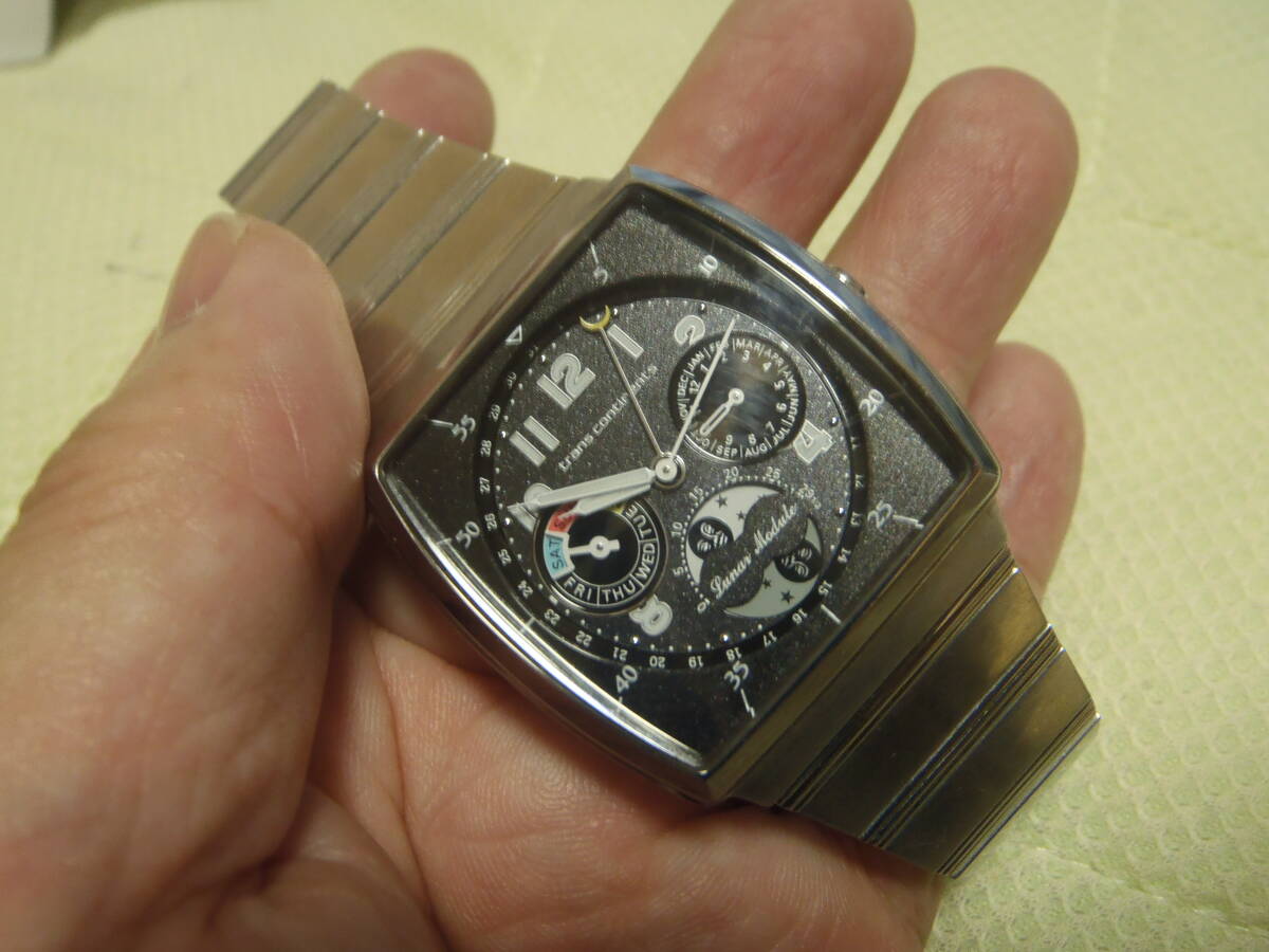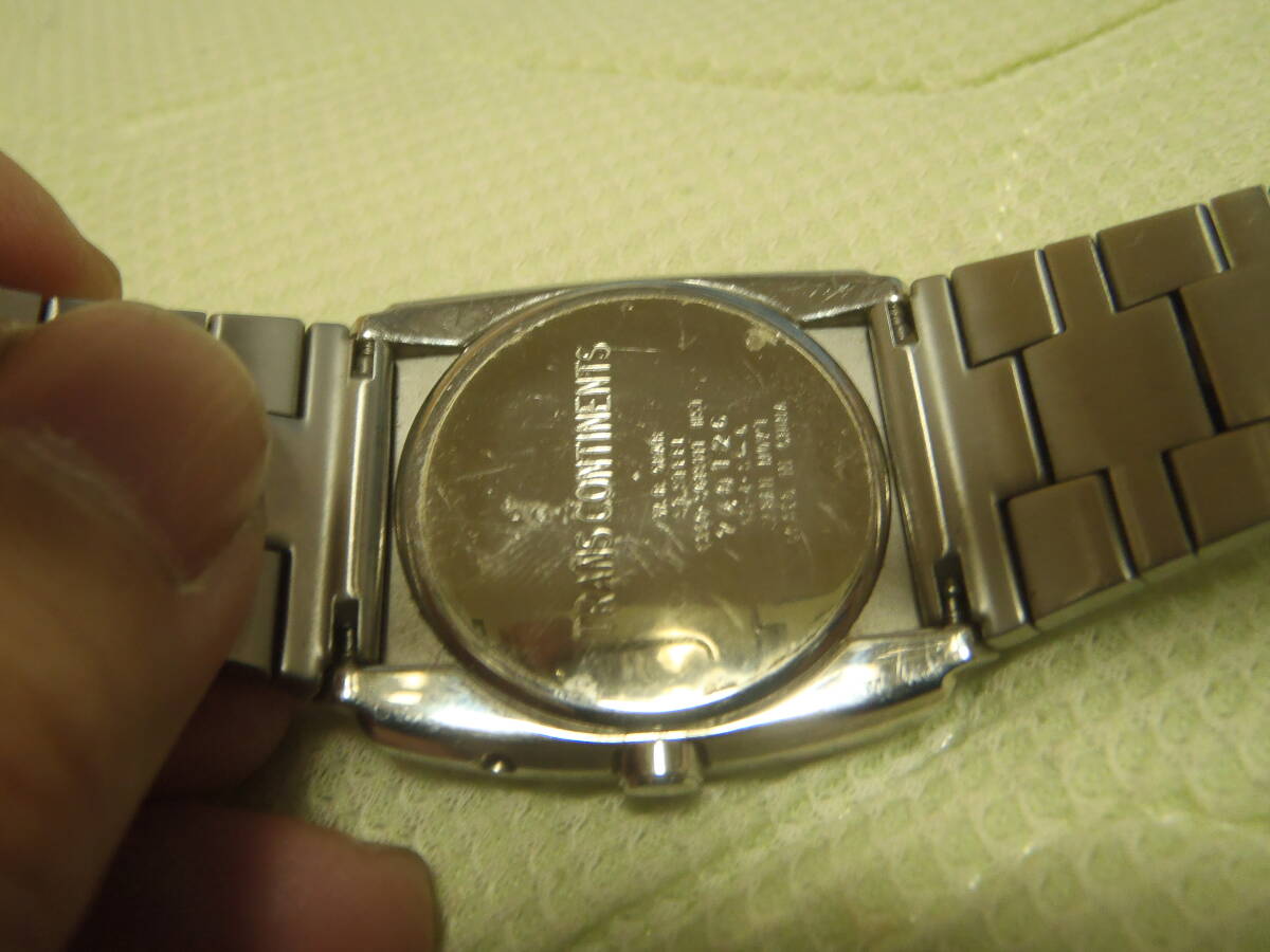 トランスコンチネンツ シチズン製 ムーンフェイズ 出品にあたり電池交換しました。正常稼働中。当方腕回り17cmでぴったりなので参考まで。細かな傷、使用感あります。