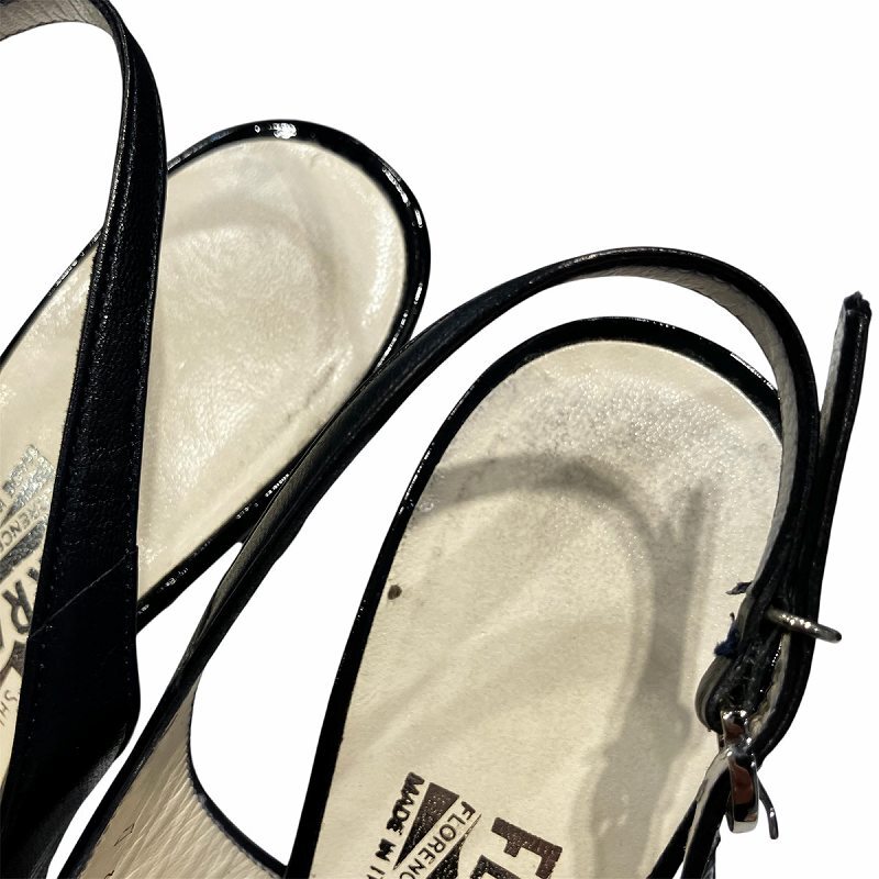 サルヴァトーレフェラガモ Salvatore Ferragamo パンプス ミュール ポインテッドトゥ ハイヒール エナメル切り替え ストラップ 4 1/2 黒 ブラック レディース